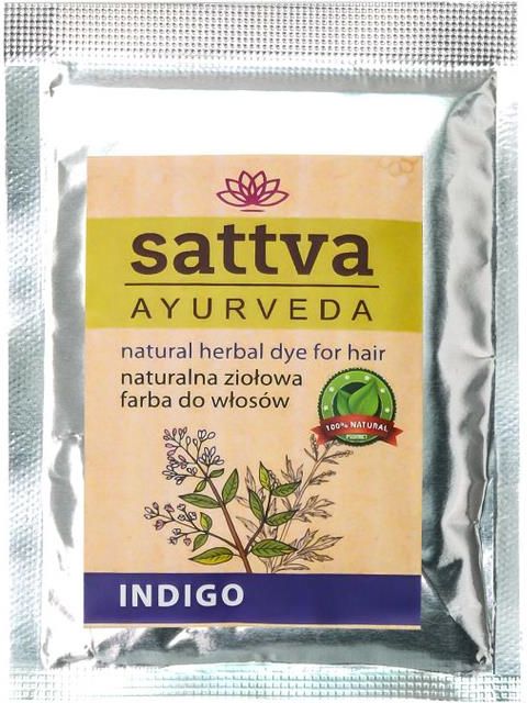 Sattva Ayurveda Henna Do Włosów Indigo 10gSaszetka służy jako tester wybranego koloru.Przed pierwszym nałożeniem henny na całe włosy można wykonać test na pasmie włosów.Opakowanie zawiera 100% sproszkowanych liści rośliny o nazwie Indigofera Tinctoria (Indygowiec barwierski). Henna ta ma charakterystyczny czarny kolor z niebieskimi refleksami. Farbowanie henną Sattva Ayurveda jest idealne dla osób wrażliwych na chemiczne farbowanie, ponieważ jest to w 100% naturalny produkt. Mogą ją także bez problemu stosować kobiety w ciąży.UWAGA: Kolor ciemnieje przez 48 godzin, zatem ostateczny kolor użycia henny uzyskasz po upływie 48 godzin od jej nałożenia. Do tego czasu nie myj włosów szamponem.Sposób użycia: Umyj włosy szamponem (bez silikonów). Wymieszaj potrzebną ilość proszku z letnią wodą o temperaturze około 50 C, aby utworzyć gładką pastę. Pozostaw hennę na 30 minut. Załóż rękawiczki ochronne, aby chronić ręce przed zabarwieniem. Podziel włosy na cztery sekcje, nakładaj dokładnie pastę od nasady po końce w każdej sekcji. Owiń głowę folią i nałóż ręcznik, aby zachować odpowiednią temperaturę. Pozostaw na włosach przez 2-3 godziny. Zmyj hennę ciepłą wodą Wyprodukowano w Indiach.Produkt nie testowany na zwierzętach. *W przypadku pokrycia siwych włosów u brunetek za pomocą koloryzacji ziołowej, najlepiej sprawdzi się hennowanie dwuetapowe.