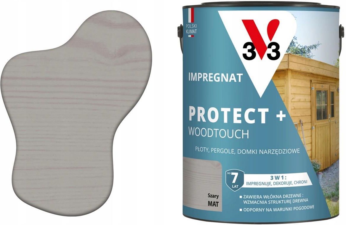 V33 Impregnat do drewna Protect + Woodtouch 3w1 Szary 0,7l Tyczyn