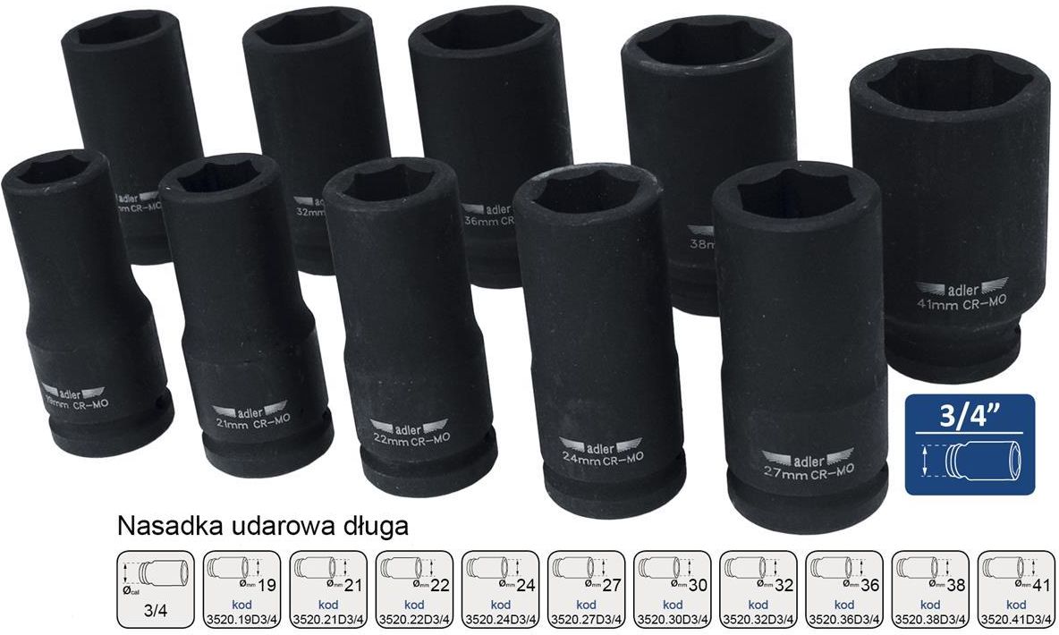 ADLER NASADKA UDAROWA 3/4" 36mm DŁUGA Tykocin