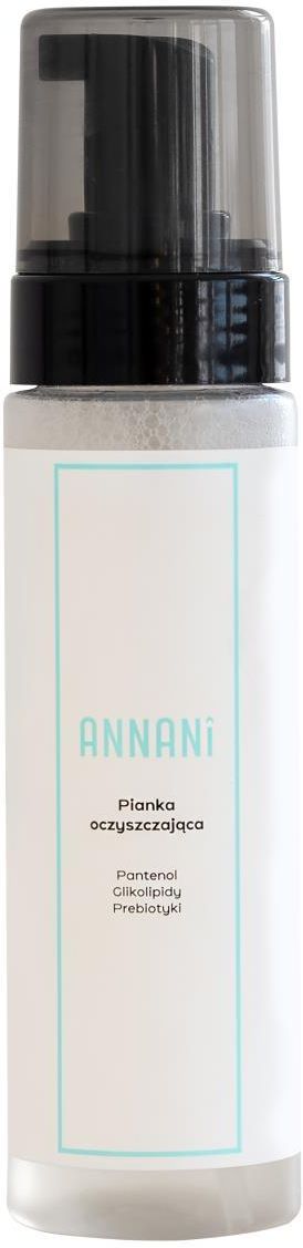 Annani Pianka Oczyszczająca do Twarzy 200ml Annani Pianka Oczyszczająca do Twarzy to delikatny, prebiotyczny kosmetyk do codziennego oczyszczania skóry, odpowiedni dla każdego typu cery. Skutecznie usuwa zanieczyszczenia i nadmiar sebum, pozostawiając skórę świeżą, miękką i przyjemnie odświeżoną. Formuła z pantenolem łagodzi podrażnienia i koi wrażliwą skórę, a glikolipidy delikatnie myją, jednocześnie chroniąc barierę hydrolipidową. Prebiotyki wspierają naturalną florę bakteryjną skóry, pomagając zachować jej równowagę i zdrowy wygląd każdego dnia. Annani Pianka Oczyszczająca łączy skuteczność i łagodność w jednym produkcie - idealna do porannego i wieczornego rytuału pielęgnacyjnego, także przy skórze wrażliwej i skłonnej do przesuszeń. Korzyści ze stosowania - Skutecznie oczyszcza, nie wysuszając skóry - Wzmacnia naturalną barierę ochronną - Łagodzi i koi podrażnienia dzięki pantenolowi - Wspiera mikrobiom skóry dzięki prebiotykom Sposób użycia Nanieś niewielką ilość pianki na wilgotną skórę twarzy, delikatnie masuj kolistymi ruchami, a następnie spłucz ciepłą wodą. Stosuj codziennie rano i wieczorem. Pojemność: 200ml