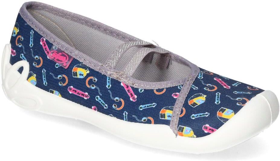 Wygodne baleriny dziecięce renomowanej marki Befado: - cholewka wykonana z przewiewnych tkanin bawełnianych - wnętrze wykonane w całości z materiału tekstylnego - wkładka wewnętrzna pokryta została skórą naturalną - obuwie posiada certyfikat "Zdrowa stopa" przyznawany przez Instytut Przemysły Skórzanego- zabezpiecza prawidłowy rozwój stopy dziecka - zapięcia na rzepy ułatwiają zakładanie i dopasowanie do nóżki dziecka - antypoślizgowy spód wykonany z solidnych materiałów syntetycznych, które są elastyczne i oddychające - granatowy kolor oraz piękne wzory zachwycą każdego malucha!