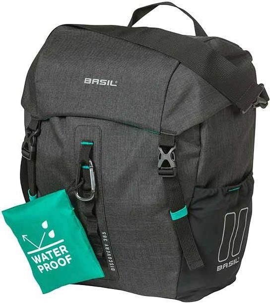 Basil Discovery 365D Single Bag to pojedyncza torba o pojemności 9 litrów, która dzięki swojej lekkiej i kompaktowej budowie świetnie sprawdzi się przy każdym rowerowym wyzwaniu. Znajdzie swoje zastosowanie zarówno u osób poszukujących modelu sportowego, jak i do codziennych podróży po mieście. Wykonano ją z wysokiej jakości poliestru, który jest wytrzymały i odporny na przypadkowe uszkodzenia mechaniczne. Torba mocowana jest na bagażniku. Można ją stosować w większości rowerów miejskich czy trekkingowych, także w wariantach ze wspomaganiem elektrycznym. Do montażu wykorzystywany jest bardzo praktyczny system Hook-On, oparty na wymiennych haczykach. Pozwala on sprawnie odpiąć torbę z uchwytu i zabrać ją ze sobą do sklepu, biura czy na uczelnie. Odpinany pasek pozwala wygodnie przenosić ją na ramieniu. W modelu wykorzystano kilka rozwiązań znacznie ułatwiających codzienne podróżowanie. Wyróżnić należy zwłaszcza: Karabińczyk umożliwiający przypięcie kasku rowerowego do torby, Zewnętrzną kieszonkę do przewożenia osobno cennych drobiazgów czy przekąsek, Zapięcie oparte o wygodne w regulacji paski z klamrami, Praktyczny ściągać pozwalający osłonić zawartość torby, Odblaski z trzech stron znacznie zwiększające widoczność po zmroku. W zestawie z torbą znajdziesz pokrowiec przeciwdeszczowy od marki Basil, który można wykorzystać do zabezpieczenia ładunku przed przemoczeniem. Możliwe jest przykrycie nim całego modelu, co skutecznie osłoni go także przed zabrudzeniem przy kontakcie z błotem spod kół.
