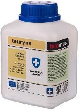 Tauryna BIOMUS 250g Nazwa: Tauryna Synonimy: taurine Gatunek: czysty bez domieszek Czystość: czysty 100% Wzór chemiczny: C2H7NO3S Nr CAS: 50-00-0 Nr WE: 203-483-8 Nr index: nie dotyczy Dostępne opakowania: 100g, 250g, 500g, 1kg, 5kg, 25kg Gwarantujemy produkty wyłącznie najwyższej czystości i …