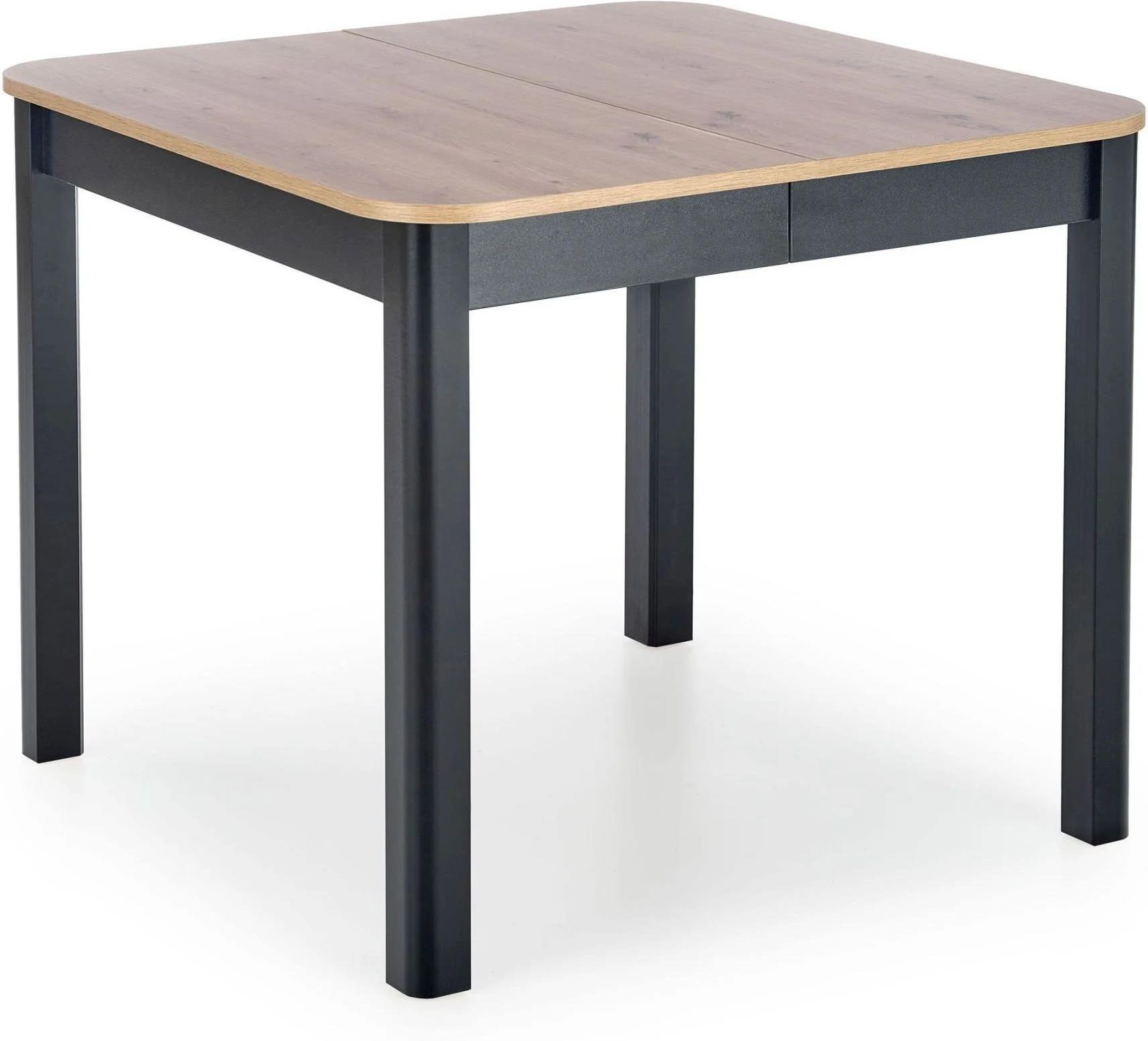 Stół Dąb Artisan/ Czarny rozkładany Stół Kwadratowy Rozkładany ST46M 90x90-130 cm to komfort, funkcjonalność i styl. Stół ST46M łączy w sobie elegancję i funkcjonalność. Wykonany z najwyższej jakości płyty laminowanej, gwarantuje trwałość i odporność w codziennym użytkowaniu. Stół jest niezwykle praktyczny dzięki funkcji rozkładania. Przemyślany design i wyjątkowa funkcjonalność sprawia, że stół ST46M to inwestycja w komfort, funkcjonalność i piękny wygląd w każdym domu. Dzięki swojej wszechstronności, doskonale sprawdzi się zarówno w jadalni, jak i w salonie czy kuchni. Możliwość rozłożenia pozwala na dostosowanie wielkości do aktualnych potrzeb. Bez problemu pomieści dodatkowych gości, a po złożeniu nie zajmuje dużo miejsca. Idealnie komponuje się z tapicerowanymi czy drewnianymi krzesłami, które można wybrać z naszej oferty. Stół ST46M w kolorze dąb artisan z czarnymi nogami to uniwersalny wybór, który świetnie komponuje się z wieloma aranżacjami. Jego klasyczny design sprawia, że pasuje zarówno do nowoczesnych, jak i tradycyjnych wnętrz. Parametry produktu Stół rozkładany: Tak Kształt stołu: Stół kwadratowy Kolor korpusu: Czarny Kolor blatu: Dąb Artisan Długość stołu: 90 cm Szerokość stołu: 90 cm Wysokość stołu: 76 cm Długość stołu po rozłożeniu: 130 cm Grubość blatu: 1,8 cm