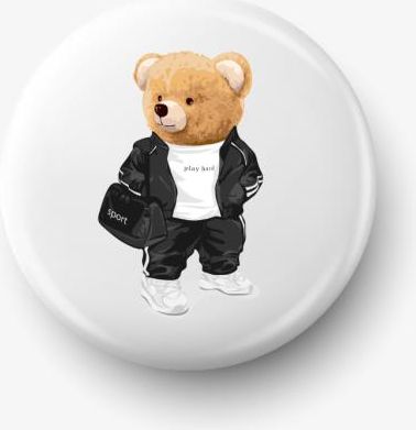 Przypinka z misiem - sportowcem, który wybiera się na trening.