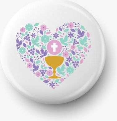 De Art S.C. Button Komunia Serce Kwiatki Tykocin