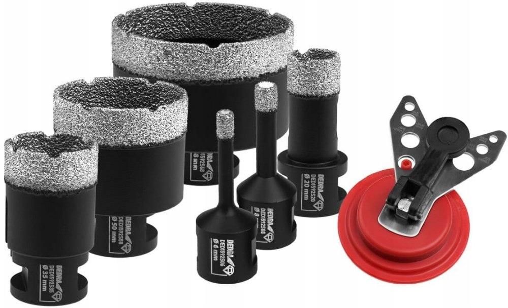 Zestaw koronek diamentowych VB DEDRA DED1592SZ04 6 szt oraz prowadnik. DED1592SZ04 Zestaw 6 koronek diamentowych Vacuum Brazed DED1592SZ04 przeznaczony do precyzyjnego wiercenia otworów na sucho i mokro oraz dedykowana do pracy ze szlifierkami kątowymi. Dodatkowo zawiera prowadnik, który znacznie ułatwia i przyspiesza pracę, jednocześnie minimalizując ryzyko uszkodzenia materiału. Cechy i parametry Technologia lutowania próżniowego Czystość cięcia Długa żywotność Bezpieczeństwo Proste mocowanie M14 Praca: na sucho i mokro Średnica koron: 6, 8, 20, 35, 50, 68 mm Długość korony: 60 mm Rodzaj nasypu: diamentowy Prędkość obrotowa: 10000-14000 obr/min. Rodzaj mocowania: M14- umożliwia montaż koronki do szlifierki kątowej Prowadnik- do stabilnego i precyzyjnego wiercenia otworów Zastosowanie w budownictwie remonty i modernizacje dekoracje oraz rzemiosło kamieniarstwo Trwałość, wydajność i bezpieczeństwo w każdym projekcie. Zakres zastosowań obejmuje obróbkę takich materiałów jak twarda ceramika, beton, cegła, szkło, asfalt, laminat, PVC, stal. metale nieżelazne, drewno itp. Koronki posiadają gwint M14, który umożliwia prosty montaż i solidne zamocowana do do dowolnej szlifierki kątowej. System vacuum brazed to technika lutowania twardego, która jest przeprowadzana w próżni. Metoda gwarantuje dużą czystość i trwałość połączenia ziaren diamentowych wraz z korpusem koronki. Dzięki temu otrzymujemy bardzo wytrzymałe i bezpieczne koronki. Zestaw Dedry obejmuje koronki o rozmiarach 6, 8, 20, 35, 50, 68 mm Zaczynając pracę ważne jest, żeby wiercenie rozpocząć od ustawienia krawędzi wiertła pod kątem 45 stopni oraz odpowiednio dostosować prędkość obrotową narzędzia do rodzaju materiału, który jest obrabiany. Koronki te mogą być używane do wiercenia otworów w płytkach ceramicznych podczas instalacji łazienkowej lub kuchennej, tworzenia otworów w betonowych ścianach i podłogach w celu montażu systemów elektrycznych i sanitarnych, wiercenia otworów w stalowych konstrukcjach czy metalach nieżelaznych, a także w drewnianych elementach, takich jak meble. Większe koronki umożliwiają łatwe wiercenie dużych otworów do instalacji rur i kabli oraz wszelkich prac konstrukcyjnych i remontowych wymagających obszernych średnic. Dołączona do zestawu przyssawna prowadnica ułatwia wykonanie precyzyjnego otworu. Jest bardzo praktycznym narzędziem, zwłaszcza przy wierceniu w twardych i gładkich materiałach, gdzie tradycyjne prowadnice mogą mieć problem z utrzymaniem stabilności. Jesteśmy firmą narzędziową działającą w branży od 1991r. Nasz katalog to bogata oferta elektronarzędzi, urządzeń akumulatorowych, akcesoriów do elektronarzędzi, narzędzi ogrodowych, urządzeń spawalniczych, narzędzi ręcznych, artykułów BHP. Nasze produkty sprzedajemy w Polsce i 14 krajach Europy. Nieprzerwanie od kilku dekad dbamy o wysoką jakość oferowanych produktów oraz usług a potrzeby klientów są naszym priorytetem. Hasło “Mocna Trwała Niezawodna” niezmiennie charakteryzuje markę Dedra.