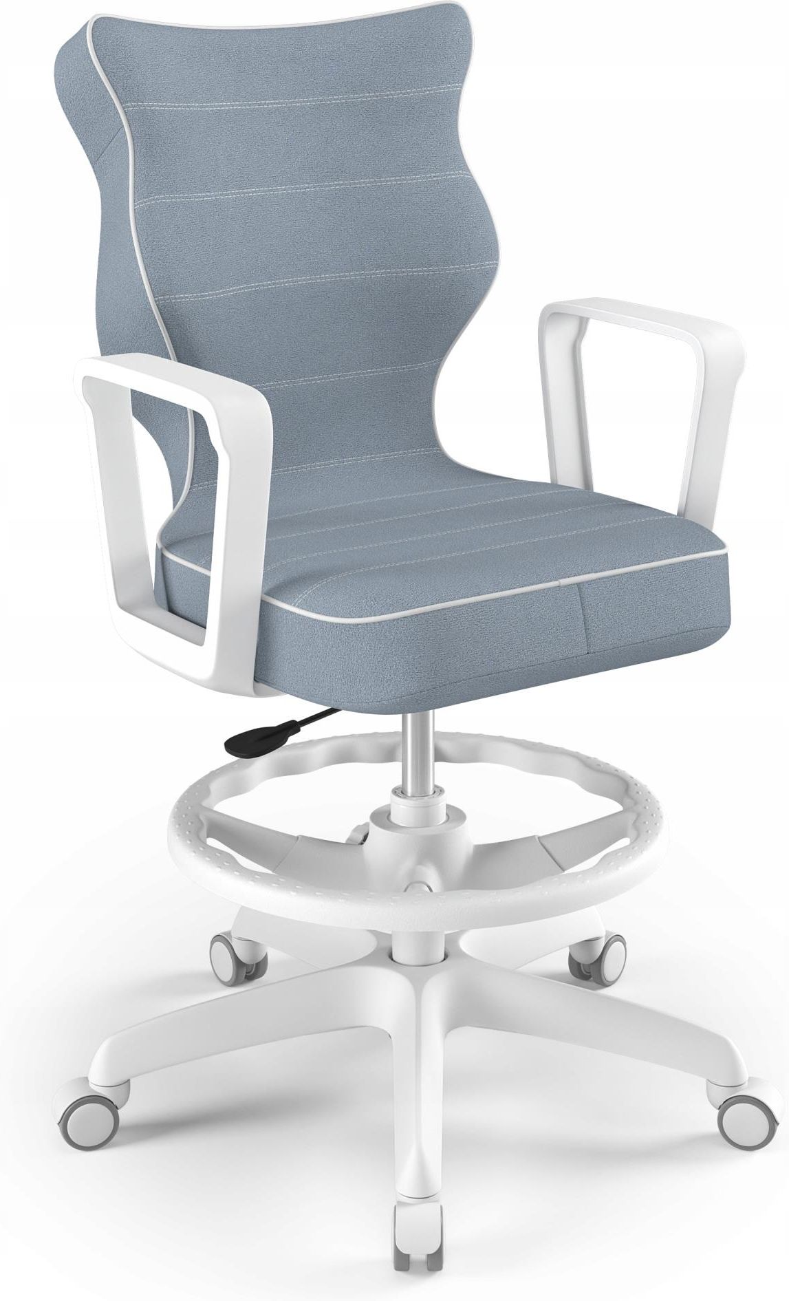 Entelo Krzesło dziecięce Norm WH Jasmine rozmiar 5 z podnóżkiem dopasowane do wzrostu 146-176,5 cm Model Norm dopasowany do biurek o wysokości 70-82 cm. Krzesło obrotowe dla młodzieży jest ważnym elementem wyposażenia pokoju każdego nastolatka. Przygotowaliśmy dla naszych Klientów model Norm, …