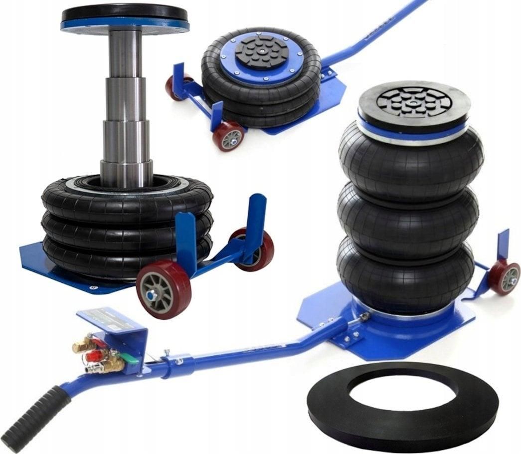 PODNOŚNIK pneumatyczny BAŁWANEK 6T poduszkowy 150 - 400 mm + GUMOWA PODKŁADKA SilverTools S11085 Warsztatowy podnośnik pneumatyczny typu bałwanek, wykonany z bardzo wysokiej jakości materiałów. Podnośnik pneumatyczny jest przeznaczony do prac w których wymagane jest podnoszenie dużych ciężarów. Podnośnik przeznaczony jest do pracy w warsztatach samochodowych, wulkanizacjach, gospodarstwach rolniczych i miejscach gdzie występuje potrzeba podnoszenia urządzeń i maszyn. Dane Techniczne Zasilany sprężonym powietrzem; Szybkozłączka do podłączenia innych urządzeń pneumatycznych; Udźwig do 6 ton Min. wysokość: 15 cm Max. wysokość: 40 cm Waga: 18 kg Ciśnienie robocze: 6 - 12 bar Dodatkowa gumowa podkładka kolor niebieski lub czerwony BUDOWA ☑️ Podnośnik zamontowany jest na podstawie stalowej. Elementem nośnym podnośnika jest miech ze zbrojonego kauczuku wewnątrz którego umieszczona jest stalowa tuleja zapewniająca podnośnikowi stabilność podczas pracy jak również ograniczająca wysokość podnoszenia do 400 mm. Miech w górnej części zamknięty jest płytą górną z zainstalowanym krążkiem metalowo-gumowym dla wykluczenia przypadkowego zsunięcia się elementu podwozia pojazdu z podnośnika. Do sterowania wykorzystane są zawory kulowe, jeden wlotowy z zamocowaną szybkozłączką dla łatwego mocowania węża ze sprężonym powietrzem i jednego zaworu spustowego. ZASADA DZIAŁANIA ☑️ Przy podłączonym przewodzie ze sprężonym powietrzem max. 12 bar, otwierając zawór wlotowy wpuszczamy sprężone powietrze do wnętrza miecha roboczego podnośnika. Sprężone powietrze wypełniając miech podnośnika wykonuje pracę skutkiem czego górna część podnośnika unosi się, podnosząc część pojazdu. Tempo podnoszenia zależne jest od obciążenia spoczywającego na podnośniku i może być regulowane mocniejszym lub słabszym otwarciem zaworu wlotowego. W każdej chwili czynność tę możemy zatrzymać zamykając zawór wlotowy, zamykając dopływ sprężonego powietrza do podnośnika, podnoszenie ustaje a podnośnik utrzymuje żądaną wysokość. Zastosowana w podnośniku stalowa tuleja nadaje mu stabilność i bezpieczeństwo pracy. Otwierając zawór wylotowy podnośnika wypuszczamy sprężone powietrze z wnętrza podnośnika co powoduje obniżenie ciśnienia powietrza wewnątrz mieszka gumowego co skutkuje obniżaniem się podnośnika. Proces ten możemy regulować za pomocą mocniejszego lub słabszego otwarcia zaworu wylotowego. Po całkowitym opuszczeniu pojazdu ostrożnie wysuwamy spod niego podnośnik. DODATKOWY PIERŚCIEŃ GUMOWY ☑️ Dodatkowe zabezpieczenie w postaci gumowego krążka na podnośniku typu Bałwanek chroni progi i inne elementy nośne wartościowych pojazdów przed ryzykiem zarysowania lub zagięcia. Dzięki temu krążkowi możliwe jest bezpieczne podnoszenie samochodów bez konieczności precyzyjnego celowania w punkt podnoszenia, co znacznie przyspiesza i ułatwia pracę. Dzięki temu nowatorskiemu rozwiązaniu, nie trzeba już dokładnie dopasowywać krążka do punktu podnoszenia podczas pracy. Gumowy krążek nie tylko chroni całość pojazdu, ale także konstrukcja podnośnika pozwala na równomierne uniesienie przedmiotu bez ryzyka uszkodzenia podwozia metalowym elementem podnośnika. To rozwiązanie przyczynia się do większej wygody, bezpieczeństwa i efektywności podczas pracy z podnośnikiem typu Bałwanek. Opis stalowa konstrukcja z możliwością odkręcenia rączki, możliwość pionowego ustawienia podnośnika bez dodatkowego podparcia, malowanie proszkowe stanowiące zabezpieczenie antykorozyjne; miechy gumowe z wytrzymałego kauczuku (3-poziomowe); teleskop stabilizujący wewnątrz miechów; rączka o długości 71 cm, której wyprofilowany kształt ułatwia manewrowanie podnośnikiem; antypoślizgowy uchwyt z karbowanej gumy; kółka O60 mm, wykonane z wytrzymałego tworzywa sztucznego, ułatwiające wsuwanie podnośnika pod podwozie; zawór bezpieczeństwa, zapobiegający rozerwaniu poduszki w przypadku przekroczenia dozwolonego ciśnienia sprężonego powietrza (powyżej 12 bar).