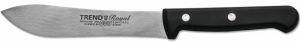nóż do siekania Trend Royal 6" firmy KDS Sedlčany. Ta gama produktów wykonana jest z francuskiej stali nierdzewnej wysokiej jakości - zawierającej molibden i wanad, co poprawia jej właściwości tnące i wydłuża żywotność ostrza. Normalnie osiągnięta twardość mieści się w zakresie 52-54 HRc. Uchwyt wykonany jest z ergonomicznie uformowanego tworzywa sztucznego. Noże te spełniają wszystkie wymagania stawiane produktom mającym kontakt z żywnością. Można myć w zmywarce. Numer artykułu 1105 ostrze 150 mm, długość całkowita 265 mm, waga 97 g