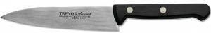 nóż uniwersalny Trend Royal 5" firmy KDS Sedlčany. Ta gama produktów wykonana jest z francuskiej stali nierdzewnej wysokiej jakości - zawierającej molibden i wanad, co poprawia jej właściwości tnące i wydłuża żywotność ostrza. Normalnie osiągnięta twardość mieści się w zakresie 52-54 HRc. Uchwyt wykonany jest z ergonomicznie uformowanego tworzywa sztucznego. Noże te spełniają wszystkie wymagania stawiane produktom mającym kontakt z żywnością. Można myć w zmywarce. Numer artykułu 1115 ostrze 130 mm, długość całkowita 230 mm, waga 56 g