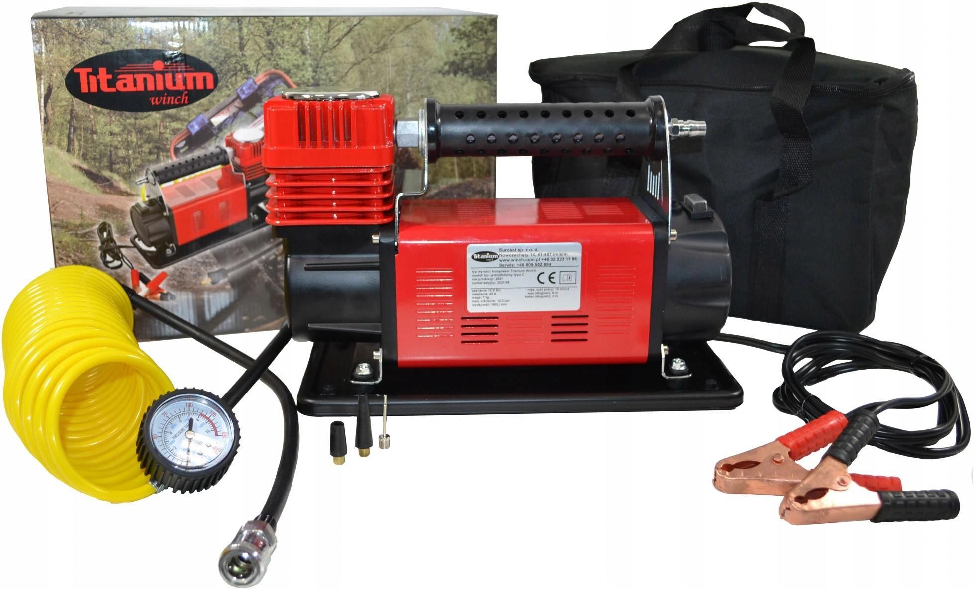 Kompresor jedno tłokowy Titanium Winch Profesjonalny metalowy kompresor jedno tłokowy TITANIUM WINCH przeznaczony do pracy w ciężkich warunkach. Idealnie nadaje się do samochodów terenowych, osobowych oraz użytkowych np lawety. Kompresor powinien znaleźć się również w każdym garażu, napompuje nie tylko koło w samochodzie ale dzięki dołączonym adapterom możemy napompować piłkę, koła w rowerze i wiele innych rzeczy. Wszystko jest spakowane w poręczną torbę. Kompresory Titanium Winch są dostępne na rynku już od ponad 10 lat, jest to sprawdzona i bardzo dobrze działająca konstrukcja. Główne cechy: Maksymalne ciśnienie 150 PSI Wydajność 160 l. / min. Napięcie zasilające 12V Wbudowany manometr PSI / Bar Przewody zasilające dł. 2 m. zakończone krokodylkami Złącze wentyl samochodowy Czas pracy ciągłej max. 10 min. Ilość tłoków jeden 60mm Materiał wykonania tłoków aluminium Przewód powietrzny spiralny, długość do 5 metrów Waga 9 kg W zestawie: Kompresor z 2 metrowym przewodem zasilającym zakończonym krokodylkami Wąż spiralny 6m z manometrem Trzy adaptery Torba firmowa Titanium Winch