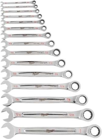 MILWAUKEE 4932464996 Zestaw kluczy płasko-oczkowyc MILWAUKEE Zestaw kluczy płasko-oczkowych MAXBITE z grzechotką 15 szt. - calowy Numer katalogowy: 4932464996 Kategoria: Narzędzia Ręczne Segment: Chwytanie i Mocowanie Grupa produktowa: Klucze Ilość w op.: 15 info: Zestaw kluczy płasko-oczkowych MAX BITE™ z grzechotką 15 szt. - wariant calowy Zawiera: 1/4″, 9/32″, 5/16″, 11/32″, 3/8″, 7/16″, 1/2″, 9/16″, 5/8″, 11/16″, 3/4″ Zestawy kluczy płasko-oczkowych z grzechotką MAX BITE Mechanizm grzechotki ze 144 zębami umożliwia pracę w ciasnych przestrzeniach. Zaokrąglona dwuteowa rękojeść dla wygodnego chwytu. Odchylenie 15° dla wygodnej pracy w ciasnych i trudno dostępnych miejscach. Chromowane wykończenie - profesjonalny wygląd i łatwe czyszczenie.