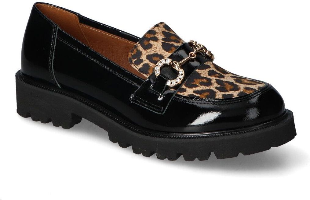 Mokasyny Gamis 7706/A128+G138 Czarne lakier+panterka Tykocin