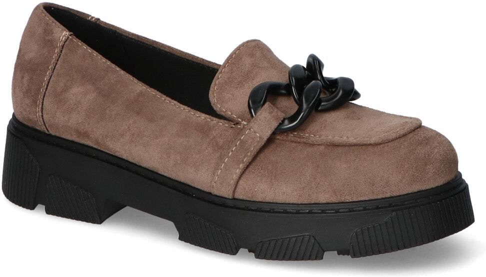 Eleganckie mokasyny firmy Kamex-but: - cholewka wykonana została z ekozamszu - wnętrze zostało pokryte skórą ekologiczną aby zapewnić komfort podczas użytkowania - wkładka wewnętrzna została wykonana ze skóry naturalnej - obcas o wys. 4 cm zapewnia stabilizację i nadaje elegancji - beżowy kolor w połączeniu ze złotym łańcuszkiem tworzą efekt, który zachwyci każdą kobietę!
