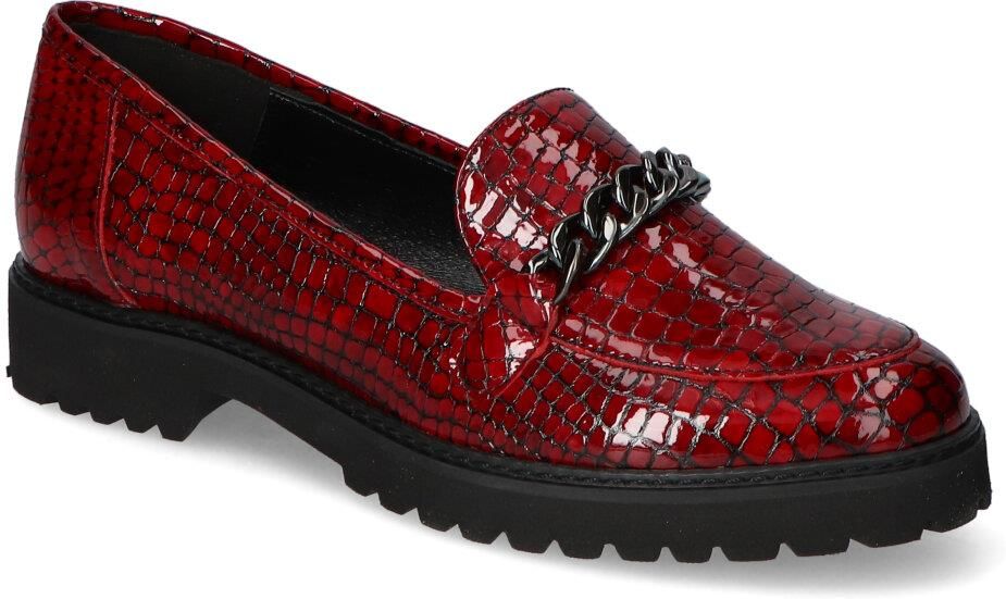 Modne mokasyny renomowanej marki Laura Messi: - cholewka wykonana została ze skóry naturalnej lakierowanej - wnętrze zostało pokryte skórą naturalną aby zapewnić komfort podczas użytkowania - wygodna wkładka wewnętrzna pokryta skórą naturalną - obcas o wys. 3 cm zapewnia stabilizację i nadaje elegancji - czerwony kolor w połączeniu ze zwierzęcym wzorem oraz ponadczasowy styl tworzą efekt, który zachwyci każdą kobietę!