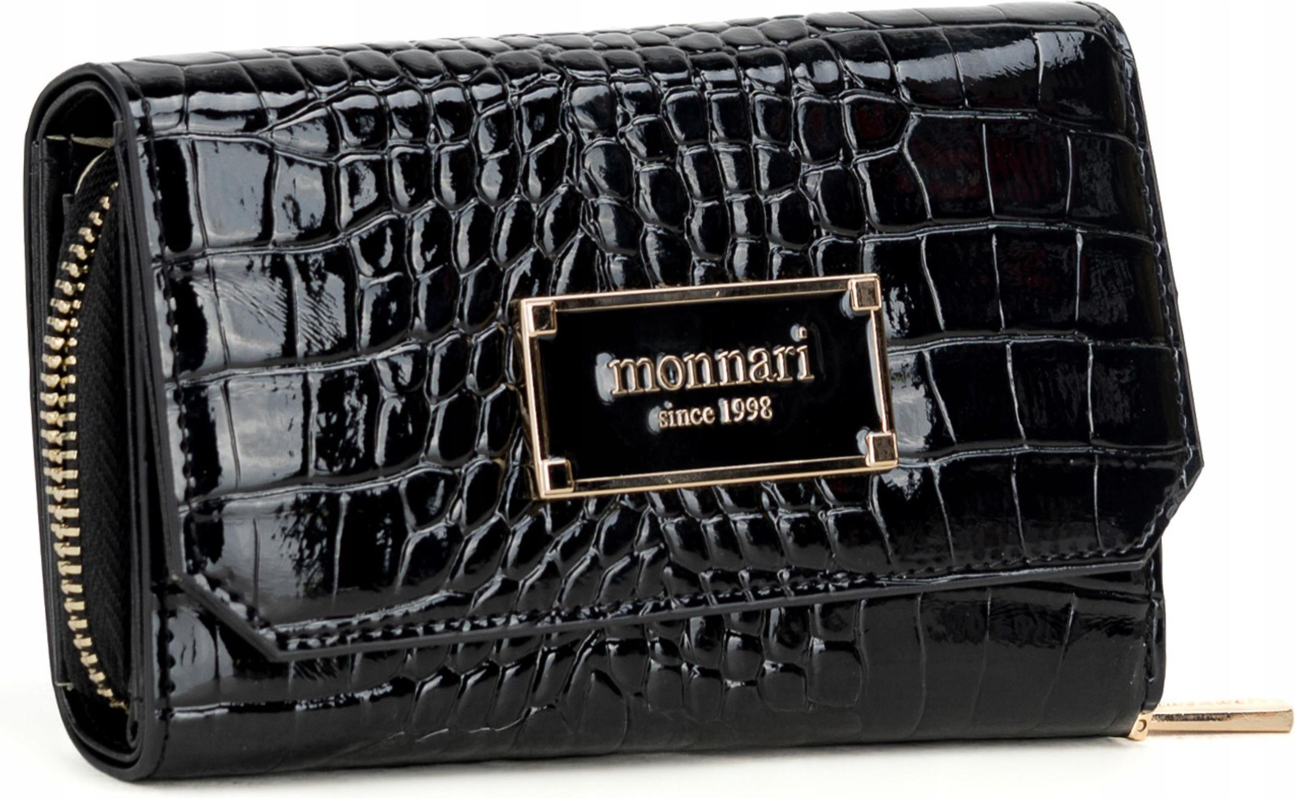 Monnari Skórzany Portfel Damski Czarny Klasyczny Na Karty Wzór Krokodyla Tykocin