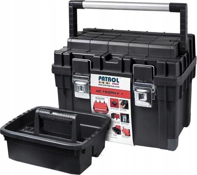 PATROL SKRZYNKA NARZĘDZIOWA TROPHY 1 595*345*355 CZAENA OPIS PRODUKTU: Alu rączka HD, Metalowe zapięcia, Nosidło Antypoślizgowe nóżki, Mini warsztat Miarka na pokrywie 50 cm Kolor: czarny Rozmiar [mm]: 595 x 345 x 355 Firma Patrol Group powstała w 1991 roku i odtąd buduje silną, polską markę, która skutecznie konkuruje ze światowymi liderami w produkcji artykułów z tworzyw sztucznych. Satysfakcja Klientów Patrol Group jest najważniejszym wyzwaniem. W tym celu zbudowano zespół doświadczonych i kreatywnych specjalistów, którzy wykorzystują w swojej pracy innowacyjne technologie oraz zaawansowane urządzenia. Dzięki ciągłej optymalizacji procesów: projektowania, produkcji i sprzedaży; oferuja solidne, ergonomiczne i estetyczne produkty w konkurencyjnych cenach. W trosce o najwyższą jakość wyrobów Patrol Group, poddawane są one stałej kontroli wewnętrznej oraz zewnętrznemu monitoringowi i certyfikacji. Oferowany asortyment usatysfakcjonuje najbardziej wymagających klientów. Każdego roku Patrol Group rozbudowuje ofertę o nowe modele, które uwzględniają aktualne trendy oraz oczekiwania Klientów.