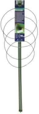 Idealna podpora do roślin pnących chodowanych zarówno w donicach jak i pojemnikach. Solidna i wytrzymała, wyprodukowana z wysokiej jakości materiałów. Elementy wykonane są z metalu i pokryte tworzywem sztucznym. Podpora posiada 4 pierścienie podtrzymujące rośliny. Wymiary: Wysokość: 90cm Szerokość pierścieni: 22cm, 26cm, 29cm, 30cm