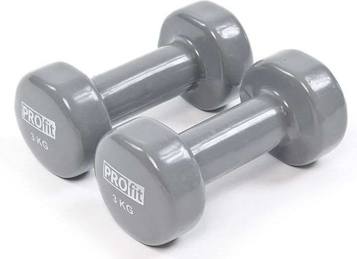 Hantle hantelki winylowe ciężarki do ćwiczeń Profit szare 2x3 kg Wysokiej jakości hantle żeliwne Profit pokryte warstwą winylu sprawdzą się w czasie treningu w domowej siłowni. Model jest niezwykle łatwy do utrzymania w czystości. Gryf hantli zapewnia doskonały komfort trzymania, co znacznie podniesie wygodę w czasie treningu. Hantelki winylowe przeznaczone są do użytku domowego, w klubach fitness oraz do rehabilitacji. Każda hantla posiada oznaczenie wagi oraz kolor przypisany do danej wagi dla łatwiejszej identyfikacji. Zestaw zawiera dwie sztuki o wadze 3 kg każda. Już dziś zadbaj o formę, sięgając po te hantle winylowe Profit! Dane techniczne:· długość całkowita: 18 cm· komplet: 2x3 kg