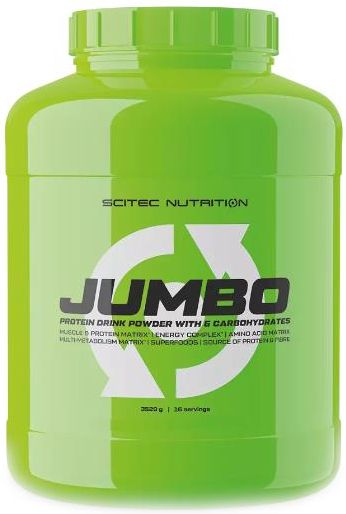 SCITEC Jumbo 3520 g Masz problem z przybraniem na wadze? Zapewne Twój metabolizm działa bardzo szybko, a przez to uzyskanie nadwyżki kalorycznej jest utrudnione. Z pomocą przychodzi matrix białkowy JUMBO od SCITEC. Zawiera 135 g węglowodanów i 53 g białka w porcji, znacznie zwiększając ilość spożywanych dziennie kalorii. Białko zawarte w JUMBO pomaga uzyskać beztłuszczową masę mięśniową i utrzymać ją na wysokim poziomie. Dodatkowo 3 g kreatyny na porcję sprzyja zwiększeniu wytrzymałości organizmu podczas treningu. Jest to "bomba kaloryczna", która pomoże Ci uzyskać nadwyżkę kaloryczną, dzięki specjalnie opracowanemu składowi, który odżywi Twoje mięśnie i dostarczy najlepszej jakości składniki. Produkt może pełnić rolę dodatkowego posiłku, ponieważ każda porcja charakteryzuje się zbilansowanymi wartościami odżywczymi. Bardzo dobrze smakuje i znakomicie się rozpuszcza. Cechy produktu Posiada białka pochodzenia wyłącznie zwierzęcego. Wspiera rozbudowywanie masy mięśniowej. Pomaga uzyskać nadwyżkę kaloryczną. Regeneruje organizm po wysiłku fizycznym. Wartość odżywcza220gKalorie3 738 kJ / 884 kcalTłuszcz14,00 gw tym kwasy tłuszczowe nasycone8,3 gWęglowodany135,00 gCukier56 gBłonnik pokarmowy6,6 gBiałko53,00 gSól0,31 gWitaminy i minerały Kwas pantotenowy4,7 mgWitamina B61,1 mgKwas foliowy100 µgWitamina D3,8 µgMagnez250 mgCynk1,8 mgChrom30 µgJUMBO MULTI MATRIX 6-CARB MATRIX143 gMaltodekstryna51 gMąka owsiana31 gGlukoza26 gPalatinose TM22 gFruktoza8 gSkrobia kukurydziana5 gJUMBO MULTI MATRIX MATRYCA MIĘŚNI I BIAŁEK3652 mgMonohydrat kreatyny i mikronizowany monohydrat kreatyny3400 mgw tym kreatyna3000 mgMagnez250 mgWitamina D3,8 ugCynk1,8 mgKOMPLEKS ENERGETYCZNY1049 mgKwas pantotenowy4,7 mgWitamina B61,1 mgL-Arginina880 mgChlorowodorek L- ornityny88 mgL- tyrozyna75 mgMATRYCA MULTIMETABOLIZMU8494 mgBetaina132 mgEkstrakt z owocu czarnego pieprzu1,75 mgKwas foliowy100 ugChrom30 ugOlej MCT6160 mgMąka migdałowa2200 mgMATRYCA AMINOKWASOWA2032 mgL-Glutamina946 mgChlorowoderek L- lizyny75 mgL-Alanina11 mgBCAA1000 mgL-Leucyna500 mgL- walina250 mgL-Izoleucyna250 mgSUPERFOODS MATRIX3470 mgProszek z komosy ryżowej1760 mgProszek z jagód goji1210 mgProszek z jagód acai500 mg Składniki: Maltodekstryna 22%, Koncentrat Białka Serwatkowego Instant 21% [Koncentrat Białka Serwatkowego, Emulgator: Lecytyny (Soja)], Mąka owsiana (gluten) 14%, dekstroza 12%, PalatinoseTM (izomaltuloza1) 10%, fruktoza 4%, kakao w proszku o obniżonej zawartości tłuszczu, średniołańcuchowy Proszek olejowy trójglicerydów 2,8% [trójglicerydy średniołańcuchowe, substancja wypełniająca (guma acacai), substancja przeciwzbrylająca (dwutlenek krzemu)], mleko Koncentrat Białkowy, Aromaty, Skrobia Kukurydziana 2%, Monohydrat Kreatyny 1,5%, Cluster Dextrin® (maltodekstryna) 1%, Mąka Migdałowa, Proszek z komosy ryżowej, Proszek z jagód Goji, Emulgator (Lecytyny), L-Glutamina, L-Arginina 0,4%, Węglan Magnezu, Proszek z jagód Acai, L-Leucyna, L-Walina, L-Izoleucyna, Mikronizowany Monohydrat Kreatyny 0,1%, Betaina 0,06%, L-Ornityna HCl, L-Lizyna HCl, L-tyrozyna, L-alanina, diglicynian cynku [bisglicynian cynku, glicyna, kwas (kwas cytrynowy), substancja przeciwzbrylająca (dwutlenek krzemu)], D-pantotenian, wapń, ekstrakt z owoców pieprzu czarnego (Piper Nigrum) BioPerine®, cholekalcyferol, chlorowodorek pirydoksyny, Pikolinian chromu, L-metylofolian wapnia. Dawkowanie Porcja: 220 g. Liczba porcji w opakowaniu: 16. Opakowanie: 3520 g. Sposób użycia Spożywaj jedną porcję (220 gramów, 5 miarek) dziennie z 400 ml wody. W dni treningowe przyjmuj jedną porcję po treningu lub między posiłkami. W dni wolne od treningu przyjmuj jedną porcję między posiłkami. Przeciwwskazania Nie zaleca się stosowania przez osoby uczulone na którykolwiek ze składników produktu. Kobiety w ciąży oraz karmiące matki przed zastosowaniem powinny skonsultować się z lekarzem. Nie przekraczać zalecanej dziennej dawki! Przechowywanie Przechowywać w suchym i ciemnym miejscu niedostępnym dla małych dzieci.