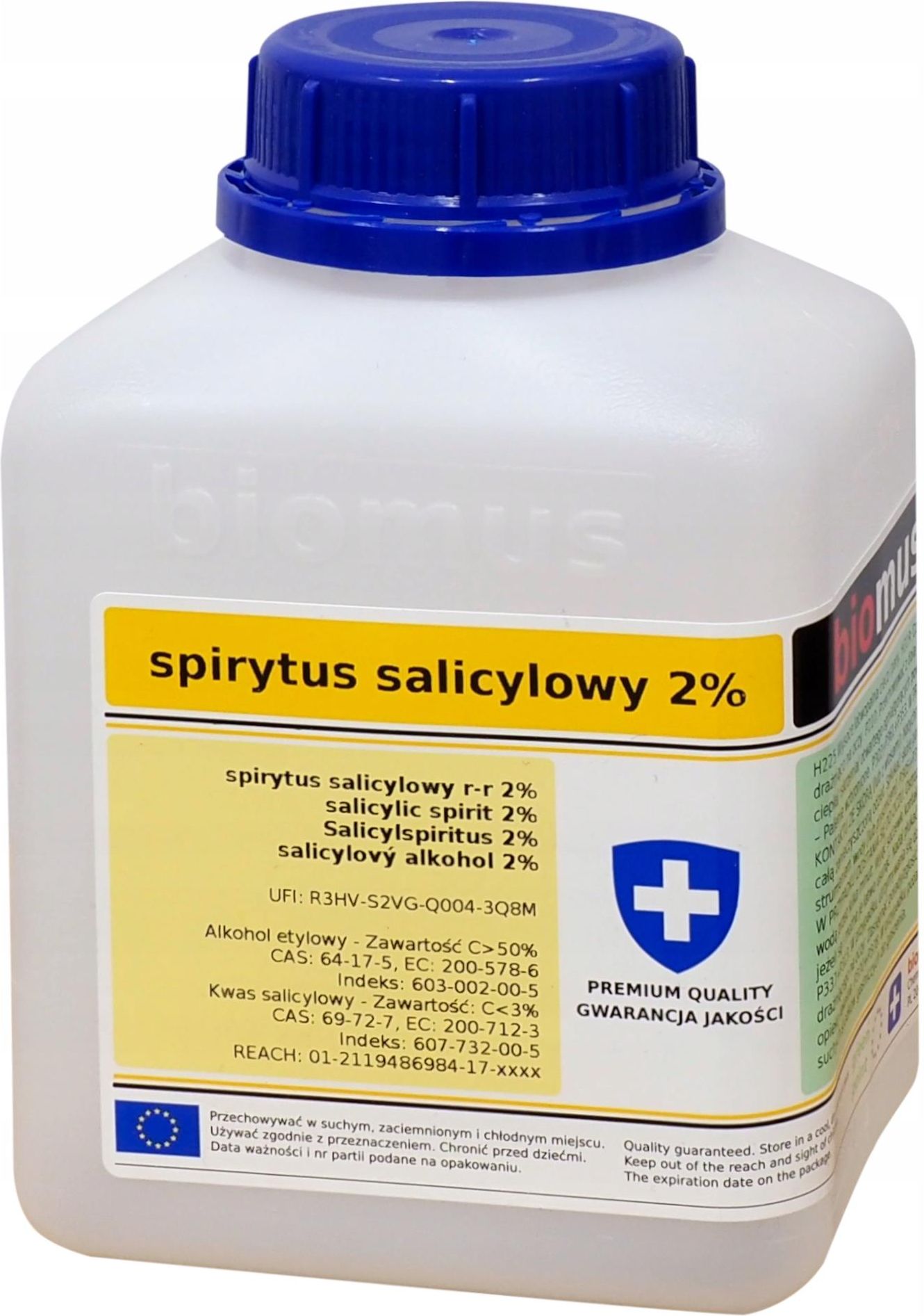 Biomus Salicylowy 2% 250ml - Środek Dezynfekujący Producent: Biomus Masa netto: 250ml Biomus Spirytus Salicylowy 2% to niezawodny preparat, który łączy działanie antybakteryjne i pielęgnacyjne w jednym. Przeznaczony dla osób z cerą tłustą i problematyczną, skutecznie oczyszcza, odkaża oraz reguluje nadmiar sebum. Idealnie sprawdzi się także jako środek do dezynfekcji rąk i drobnych ran, stanowiąc uniwersalny element każdej domowej apteczki. Najważniejsze cechy produktu ✔ Skuteczne oczyszczanie i odkażanie – głęboko usuwa zanieczyszczenia i bakterie ze skóry. ✔ Wsparcie dla cery trądzikowej – reguluje wydzielanie sebum, zmniejsza pory i łagodzi podrażnienia. ✔ Wszechstronne zastosowanie – idealny zarówno do pielęgnacji, jak i dezynfekcji. Zalecany sposób użycia Nanieś niewielką ilość preparatu na wacik kosmetyczny, delikatnie przetrzyj oczyszczoną skórę (np. twarzy, pleców, ramion) – unikając okolic oczu i ust, nie stosuj częściej niż 1–2 razy dziennie, aby nie przesuszyć skóry, nie spłukuj – pozostaw do wyschnięcia. Składniki Spirytus salicylowy 2% czysty *RWS- Nie zostało ustalone. Nie stosować w przypadku uczulenia na którykolwiek ze składników produktu. Produkt nie może być stosowany przez kobiety w ciąży i matki karmiące oraz dzieci. Nie przekraczać zalecanej do spożycia dziennej porcji produktu. Suplement diety nie może być stosowany jako substytut lub zamiennik zróżnicowanej diety. Zalecany jest zrównoważony sposób żywienia i zdrowy tryb życia. Przechowywać w suchym i chłodnym miejscu, w sposób niedostępny dla małych dzieci. Chronić przed bezpośrednim działaniem promieni słonecznych