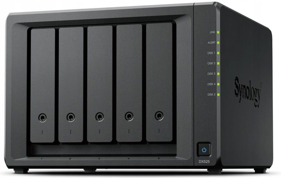 UWAGA! Nie jest samodzielny serwer NAS z możliwością podłączenia do sieci. Jest to obudowa rozszerzająca z interfejsem USB. Rozszerzanie pamięci masowej bez przestojów Łatwo dodaj pięć dodatkowych zatok na dyski do Synology DiskStation. DX525 obsługuje zarówno dyski SATA 2.5", jak i 3.5", oferując konfigurację plug-and-play oraz możliwość hot-swap dla nieprzerwanej pracy podczas rozszerzania pojemności. Dedykowane rozwiązanie do lokalnej kopii zapasowej Synology DX525 zapewnia dedykowane lokalne rozwiązanie do tworzenia kopii zapasowych dla Synology DiskStation. Gdy jest skonfigurowany jako osobny wolumen, chroni dane na swoich lokalnych dyskach w przypadku awarii systemu. Rozszerzanie wolumenu online Zarządzane przez DiskStation Manager (DSM) hosta NAS, dodatkowe zatoki DX525 są natychmiast dostępne po podłączeniu. Rozszerzanie wolumenu w locie zapewnia nieprzerwaną obsługę i rozszerzanie pamięci na hoście. Synology ma Cię pod opieką DX525 jest objęty trzyletnią ograniczoną gwarancją Synology, w tym wsparciem technicznym i usługami wymiany sprzętu. Przedłuż swoją ochronę do pięciu lat i uzyskaj dostęp do usług premium, które przyspieszają odzyskiwanie w przypadku awarii dzięki Gwarancji Przedłużonej Plus. Obsługiwane modele Obsługa tworzenia wolumenów na różnych jednostkach: DS925+ Uwagi: Aby zapewnić lepszą wydajność, zalecamy tworzenie wolumenów pamięci masowej znajdujących się fizycznie w obrębie tego samego serwera NAS lub jednostki rozszerzającej zamiast tworzenia wolumenów w obrębie Twojego serwera NAS i jednostki rozszerzającej. Pamięć masowa Kieszeń/kieszenie na dyski: 5 Typ dysku: 3.5" SATA HDD; Dysk SATA SSD 2,5” Dysk z możliwością wymiany podczas pracy (hot-swap): ✅ Zarządzanie macierzami RAID za pomocą systemu Synology DSM: ✅ Uwagi: Kompatybilne dyski są obowiązkowe. Proszę zapoznać się z naszą listą zgodności przed zakupem dysków twardych. Porty zewnętrzne Gniazdo rozszerzenia: 1 Wygląd Rozmiar (wys. x szer. x gł.): 166 mm x 230 mm x 223 mm Waga: 2.46 kg Zasilanie Przywracanie zasilania: Synchronizowane z serwerem Synology DiskStation Zasilacz / Adapter: 90 W Napięcie wejściowe zasilania prądem zmiennym: 100V to 240V AC Częstotliwość zasilania: 50/60 Hz, Jednofazowy Zużycie energii: 35.37 W (dostęp); 7.0 W (hibernacja dysków twardych) Temperatura Temperatura pracy: 0°C do 40°C (32°F do 104°F) Temperatura przechowywania: -20°C do 60°C (-5°F do 140°F) Wilgotność względna: 5% do 95% RH Inne Wentylator obudowy: 92 mm x 92 mm x 2 pcs Natężenie dźwięku: 20.4 dB(A) Uwagi: Testy szumów zostały przeprowadzone na urządzeniu Synology całkowicie wypełnionym dyskami SATA HDD Synology i w stanie bezczynności. Dwa mikrofony G.R.A.S. typu 40AE zostały umieszczone w odległości 1 metra od przodu i tyłu urządzenia. Szum tła: 16,49–17,51 dB(A); temperatura: 24,25 – 25,75˚C; wilgotność: 58,2 – 61,8% Certyfikaty FCC CE BSMI UKCA EAC VCCI RCM KC BIS Zawartość opakowania Jednostka główna X 1 Kabel rozszerzenia: USB Type-C X1 Pakiet akcesoriów X 1 Zasilacz X 1 Kabel zasilania X 1