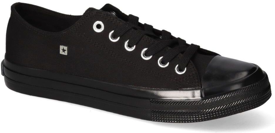 Modne trampki popularnej firmy Big Star:- cholewka wykonana została z wysokiej klasy materiału tekstylnego - wnętrze wykonane z wygodnego materiału tekstylnego- miękka materiałowa wkładka gwarantuje komfort chodzenia - podeszwa o grubości 2 cm zapewnia odpowiednią stabilizację - sznurowana cholewka zapewnia dopasowanie obuwia do tęgości stopy i ułatwia zakładanie - czarny kolor oraz modny fason tworzą efekt, który zachwyci każdego!