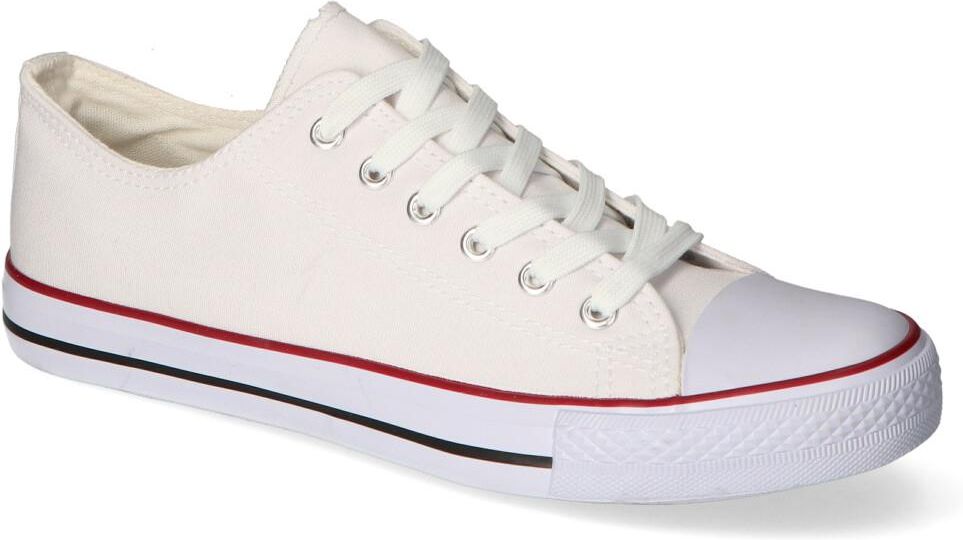 Stylowe trampki damskie:- cholewka została wykonana z materiału tekstylnego - wnętrze zostało pokryte materiałem tekstylnym aby zapewnić komfort podczas użytkowania - wkładka wewnętrzna została wykonana z materiału tekstylnego - sznurowadła ułatwiają dopasować obuwie do tęgości stopy - biały kolor oraz ponadczasowy styl tworzą efekt, który zachwyci każdą kobietę!