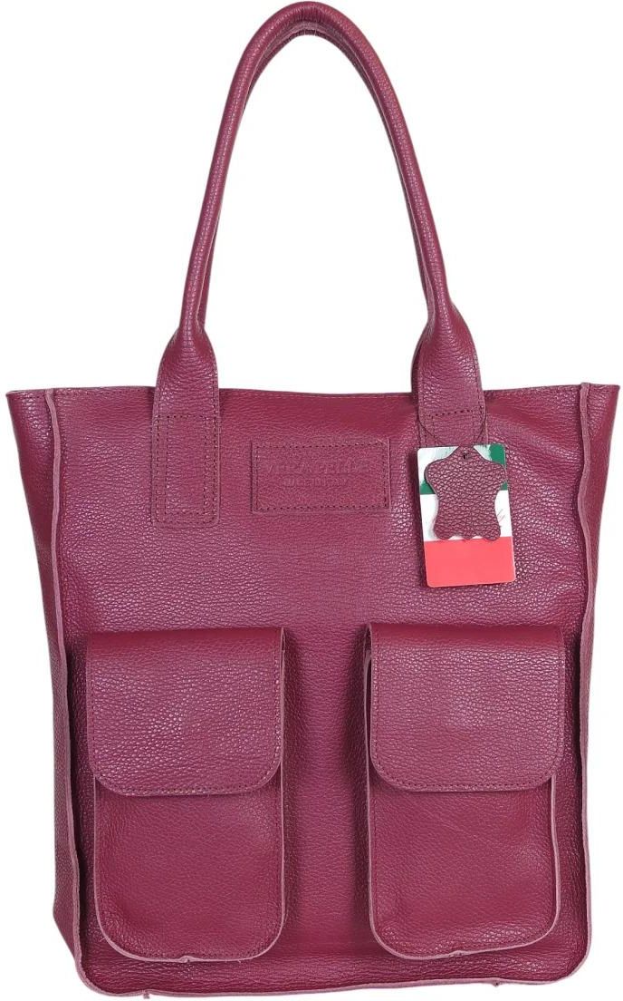 VERA PELLE Torebka skórzana A4 – włoska klasyczna torebka ze skóry naturalnej | Amarant Tykocin