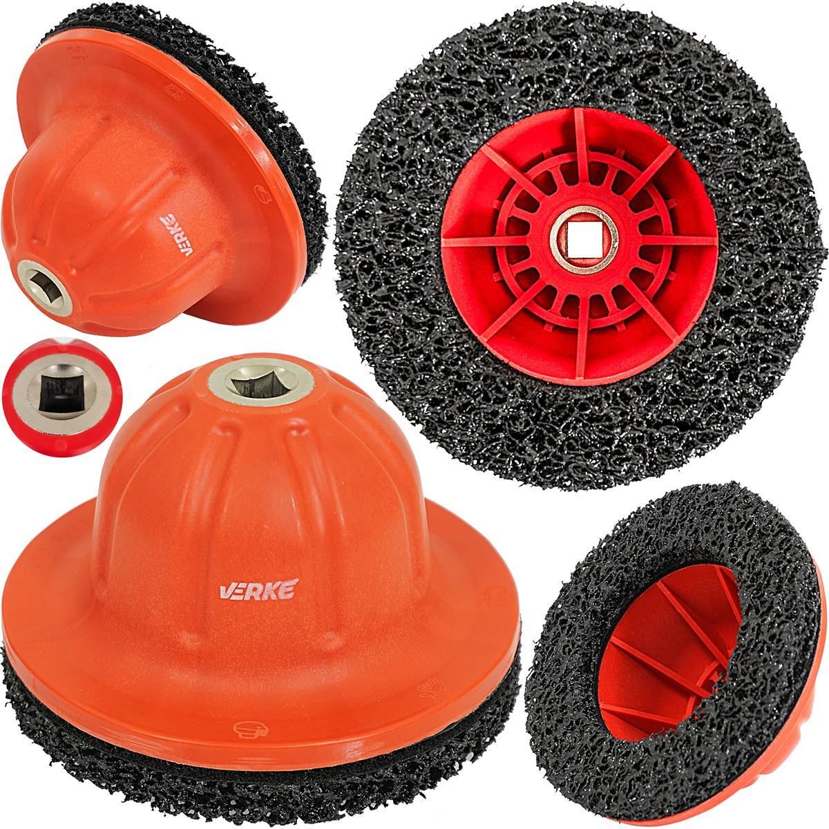 SZCZOTKA DO CZYSZCZENIA PIAST, 1/2", 150 mm VERKE Szczotka do czyszczenia piast i szpilek z zastosowaniem narzędzi udarowych. uchwyt narzędziowy: 1/2" (12.7 mm) średnica wewnętrzna: 90 mm średnica zewnętrzna: 150 mm wysokość: 90 mm ściernica mocowana na rzep materiał ściernicy: węglik krzemu OPIS …