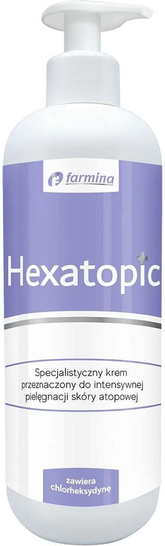 HEXATOPIC krem do skóry atopowej. Wykazuje działanie ochronno-nawilżające, a zawarta w nim chlorheksydyna posiada właściwości antybakteryjne.