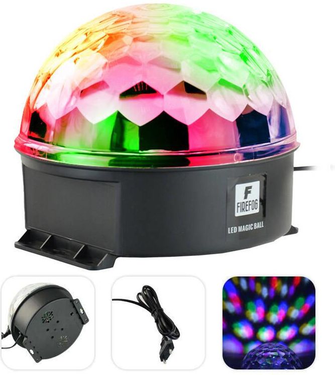 PÓŁKULA LED RGBWOP dyskotekowa imprezowa dekoracyjna Firefog Półkula FIREFOG LED MAGIC BALL Urządzenie o wyjątkowym efekcie świetlnym, które z pewnością stworzy magiczną atmosferę zarówno na scenie, jak i w Twoim własnym domu. Ta kula świetlna wysyła promienie kolorowego światła poprzez swoją przezroczystą kopułkę, tworząc fascynujące wzory i efekty na ścianach, podłodze i suficie. Urządzenie może być użytkowane przez wiele godzin bez przerwy. Sterowanie odbywa się w trybie automatycznym lub w Sound Control, który działa przez wychwytywanie dźwięku i dopasowywania do niego specjalnych efektów świetlnych. Półkula FIREFOG LED MAGIC BALL sprawdzi się doskonale również w Twoim własnym domu Czy to przy organizacji przyjęć, urodzin, czy po prostu jako element dekoracyjny w Twoim pokoju, ta kula świetlna doda magii i zabawy każdemu wydarzeniu. Możesz ustawić ją w dowolnym miejscu i cieszyć się jej efektami przez wiele godzin bez przerwy, dzięki niskiemu zużyciu energii. Dzieci i dorośli pokochają ten urządzenie za jego zdolność do tworzenia niesamowitych wzorców świetlnych, które nadadzą każdej okazji niepowtarzalny charakter. Dane techniczne Zasilanie: AC90-240V/50-60Hz LED: 6x 1W (Czerwona, Zielona, Niebieska, Biała, Fioletowa, Żółta) Żywotność DIOD LED: 20000godz Sterowanie: Auto/ Sound Control Waga: 0.4kg Wymiary: 190x 190x 170mm Spełni oczekiwania Niezależnie od tego, czy jesteś artystą scenicznym, czy po prostu chcesz dodać odrobinę magii swoim prywatnym imprezom, ta kula świetlna spełni Twoje oczekiwania i dostarczy niezapomnianych chwil.