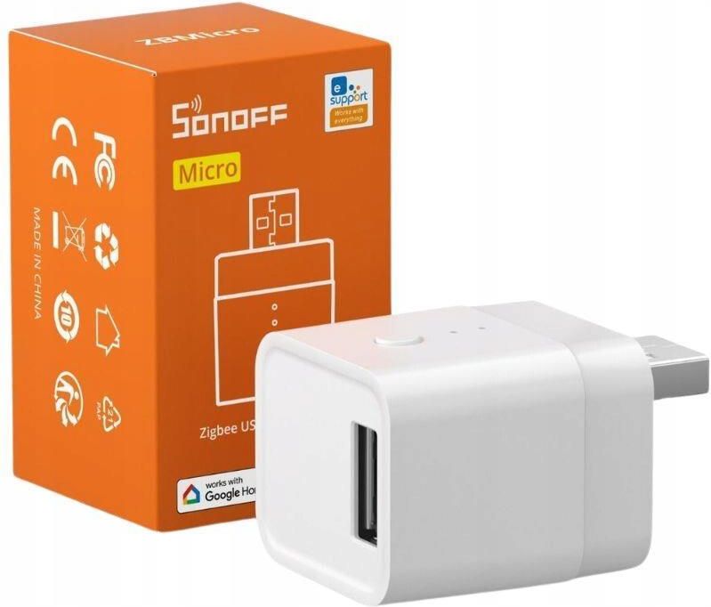 SONOFF ZBMICRO Inteligentny Adapter Wzmacniacz Sygnału Przełącznik ZigBee Producent: Sonoff Kod Produktu: ZBMicro Specyfikacja Producent: SONOFF Model: ZBMicro MCU: EFR32MG21 Prąd znamionowy: 5-22 V ⎓ 4,6 A maks. Moc znamionowa: 36 W maks. (przy użyciu adaptera QC 3.0) Łączność bezprzewodowa: Zigbee 3.0 Interfejs: USB-A Transmisja danych: USB 2.0 Waga: 17,6 g Wymiary: 33 x 31 x 26,5 mm Materiał obudowy: PC Zastosowanie: Wewnątrz budynków Temperatura pracy: Od -10°C do 40°C Wilgotność otoczenia pracy: 5-95% RH, bez skraplania Obsługiwane standardy szybkiego ładowania: QC 3.0, FCP, SCP, PE, AFC, Apple 2.4A *Wymaga adaptera szybkiego ładowania. Produkt sam w sobie nie obsługuje szybkiego ładowania. Materiał wideo prezentujący produkt: https://www.youtube.com/embed/NUFpE50IKgA?si=FLXcaaDDZUGy18Uc Inteligentny adapter, przełącznik USB ZigBee SONOFF ZBMicro (max 36W) SONOFF ZBMicro to nowoczesny adapter USB Zigbee, który umożliwia pełną automatyzację i zdalne sterowanie urządzeniami USB w Twoim inteligentnym domu. Dzięki integracji z aplikacją możesz ustawiać harmonogramy, tworzyć smart sceny i korzystać z możliwości sterowania głosowego. Produkt umożliwia też ładowanie sprzętów i doskonale sprawdza się w roli wzmacniacza sygnału Zigbee. Uwaga: do prawidłowego działania adaptera niezbędny jest hub Zigbee (brak w zestawie). Szybkie ładowanie do 36 W ZBMicro wspiera szybkie ładowanie z mocą do 36 W przy użyciu kompatybilnych adapterów. Dzięki temu w mgnieniu oka przygotujesz swoje urządzenia do dalszej pracy! Dodatkowo możliwość ustawiania harmonogramów pozwala uniknąć przeładowania, chroniąc akumulatory Twoich sprzętów i zwiększając ich trwałość. Uwaga: produkt sam w sobie nie obsługuje szybkiego ładowania – niezbędny jest dodatkowy adapter. Sprawna transmisja danych dzięki USB 2.0 Dzięki zastosowaniu Hi-Speed USB 2.0 adapter SONOFF ZBMicro znacząco zwiększa wydajność transferu danych. Jest to szczególnie przydatne podczas pracy z urządzeniami wymagającymi wysokiej prędkości transmisji. Teraz w mgnieniu oka prześlesz wszystkie niezbędne pliki! Inteligentna kontrola Za pomocą adaptera z łatwością zmienisz swoje zwykłe urządzenia USB w inteligentny sprzęt! Kiedy je podłączysz, zyskasz możliwość sterowania nimi za pomocą aplikacji i ustawiania timerów. Możesz też kontrolować je przy użyciu komend głosowych! Istnieje również możliwość łączenia ich z innymi urządzeniami i tworzenia złożonych automatyzacji. Spraw, że gdy temperatura w pomieszczeniu wzrośnie, wentylator samoistnie się uruchomi, a gdy wejdziesz do łazienki światło natychmiast się włączy. Adapter jest kompatybilny z Amazon Alexa, Google Home, Alice, IFTTT oraz SmartThings. Szeroka kompatybilność ZBMicro współpracuje z hubami Zigbee obsługującymi Zigbee 3.0, takimi jak SONOFF iHost, NSPanel Pro, ZB Bridge Pro, a także Echo Plus 2nd, Echo 4th Gen, Echo Show 2nd, Philips Hue, AeoTec Smart Home Hub V3 i SmartThings hub V3. Jest też kompatybilny z otwartymi platformami automatyzacji, takimi jak Home Assistant, Zigbee2MQTT czy openHAB, umożliwiając pełną personalizację automatyzacji w domu. Zaawansowane wzmocnienie sygnału z trybem Turbo Adapter pełni również funkcję routera Zigbee, zapewniając stabilne i niezawodne połączenie w całym domu. Jest to możliwe dzięki zaawansowanej technologii Turbo Mode, która zwiększa zasięg i siłę sygnału. Zapomnij o problemach z transmisją! To idealne rozwiązanie dla miejsc z dużą liczbą urządzeń Zigbee, gdzie stabilność połączenia ma bardzo duże znaczenie. Wytrzymały i prosty w konfiguracji Model ZBMicro został wykonany z trwałych, odpornych na uszkodzenia materiałów. Dzięki temu jest bardzo wytrzymały – niestraszne mu nawet upadki i uderzenia. Będzie świetnie Ci służyć przez długi czas! Konfiguracja adaptera również nie sprawi Ci problemu. Wystarczy pobrać aplikację eWeLink i wykonać kilka prostych kroków.