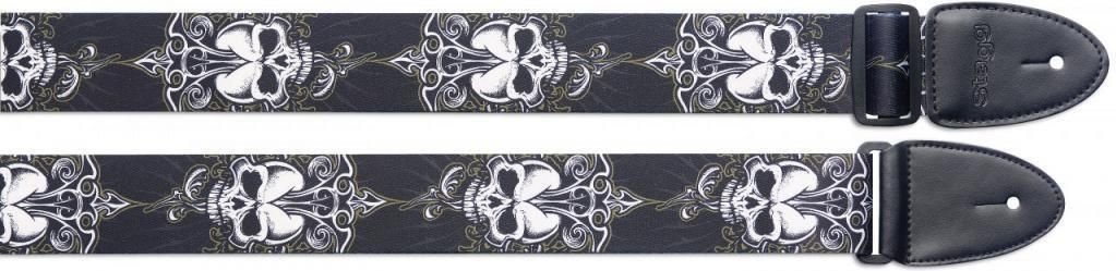 Stagg STE BLACK SKULL - pasek do gitary 5414428191564 Stagg Specyfikacja: Materiał: Nylon Długość: Regulowana, 82 - 141 cm Kolor: Motyw czaszki