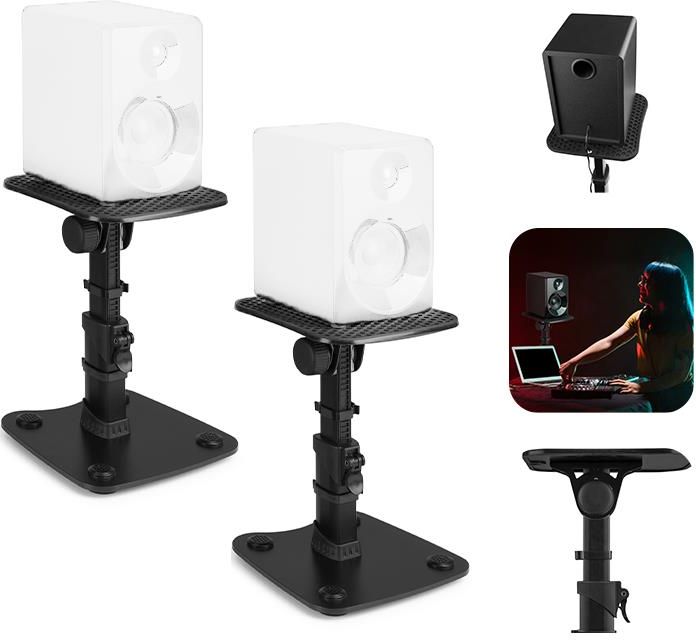 Zestaw 2 statywów biurkowych na głośniki do monitorów studyjnych do PC Kod produktu: 180.220 Statywy pod głośniki do Twoich monitorów studyjnych Szukasz solidnych i regulowanych podstawek pod głośniki do swoich monitorów studyjnych lub głośników biurkowych? Vonyx SMS30 oferuje bardzo funkcjonalne …