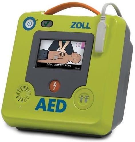 Defibrylator Zoll AED 3 - Półautomatyczny defibrylator to urządzenie, które krok po kroku prowadzi ratownika przez proces wysokiej jakości resuscytacji krążeniowo-oddechowej (RKO). Jeśli to konieczne, dostarcza również wstrząs do serca pacjenta, co może uratować życie.Defibrylator Zoll AED 3 - Półautomatyczny defibrylator to urządzenie, które krok po kroku prowadzi ratownika przez proces wysokiej jakości resuscytacji krążeniowo-oddechowej (RKO). Jeśli to konieczne, dostarcza również wstrząs do serca pacjenta, co może uratować życie. Defibrylator Zoll AED 3 prowadzi ratownika przez proces RKO krok po kroku, umożliwiając wysoką jakość resuscytacji. Może dostarczyć wstrząs do serca pacjenta, gdy jest to konieczne, co może uratować życie. Wyposażony w technologię Real CPR Help firmy Zoll, pomaga ratownikom wykonywać RKO zgodnie z najnowszymi standardami dotyczącymi głębokości i tempa ucisków. W czasie rzeczywistym informuje ratownika o poprawności wykonywanych ucisków, zarówno głosowo, jak i wizualnie na kolorowym, dotykowym wyświetlaczu LCD. Posiada wbudowany tryb pediatryczny, który można aktywować za pomocą prostego przycisku, co umożliwia stosowanie zarówno u dorosłych, jak i dzieci. W zestawie ratunkowym znajdują się bezlateksowe rękawiczki, maska ochronna, golarka, papierowy ręcznik i ściereczka. Łatwo zarządza się urządzeniem w chmurze, automatycznie łącząc się przez Wi-Fi z systemem zarządzania PlusTrac™ i wysyłając natychmiastowe powiadomienia o problemach z autotestem. Możliwy jest transfer danych za pomocą ekranu dotykowego, przesyłając dane na nośnik pamięci USB lub przez sieć Wi-Fi do ZOLL Case Review. Bateria pozwala na 5 lat działania w trybie czuwania przy cotygodniowych autotestach oraz 3 lata przy codziennych autotestach. W zestawie znajdują się również elektrody CPR Uni-padz™ o żywotności do 5 lat. Posiada uchwyt transportowy, a jego konstrukcja umożliwia ułożenie w dwóch płaszczyznach. Wymiary: (W x S x G) 12,7 x 23,6 x 24,7 cm; 5,0 x 9,3 x 9,7 calaCiężar: 2,5 kg; 5,5 funtaZasilanie: Bateria Sieć bezprzewodowa: 802.11 a/b/g/nProtokoły zabezpieczeń: WPA 1, WPA 2, WPA Personal, WPA Enterprise Port: USB 2.0Pakiet akcesoriów ratunkowych zawiera: Rękawiczki bezlateksowe, maskę ochronną do RKO, golarkę, ręcznik papierowy i ściereczkę.Klasyfikacja wyrobu: Klasa II i zasilanie wewnętrzne według EN 60601-1Normy konstrukcyjne: Spełnia odpowiednie wymagania norm EN 60601-1, IEC 60601-1-11, IEC 60601-2-4