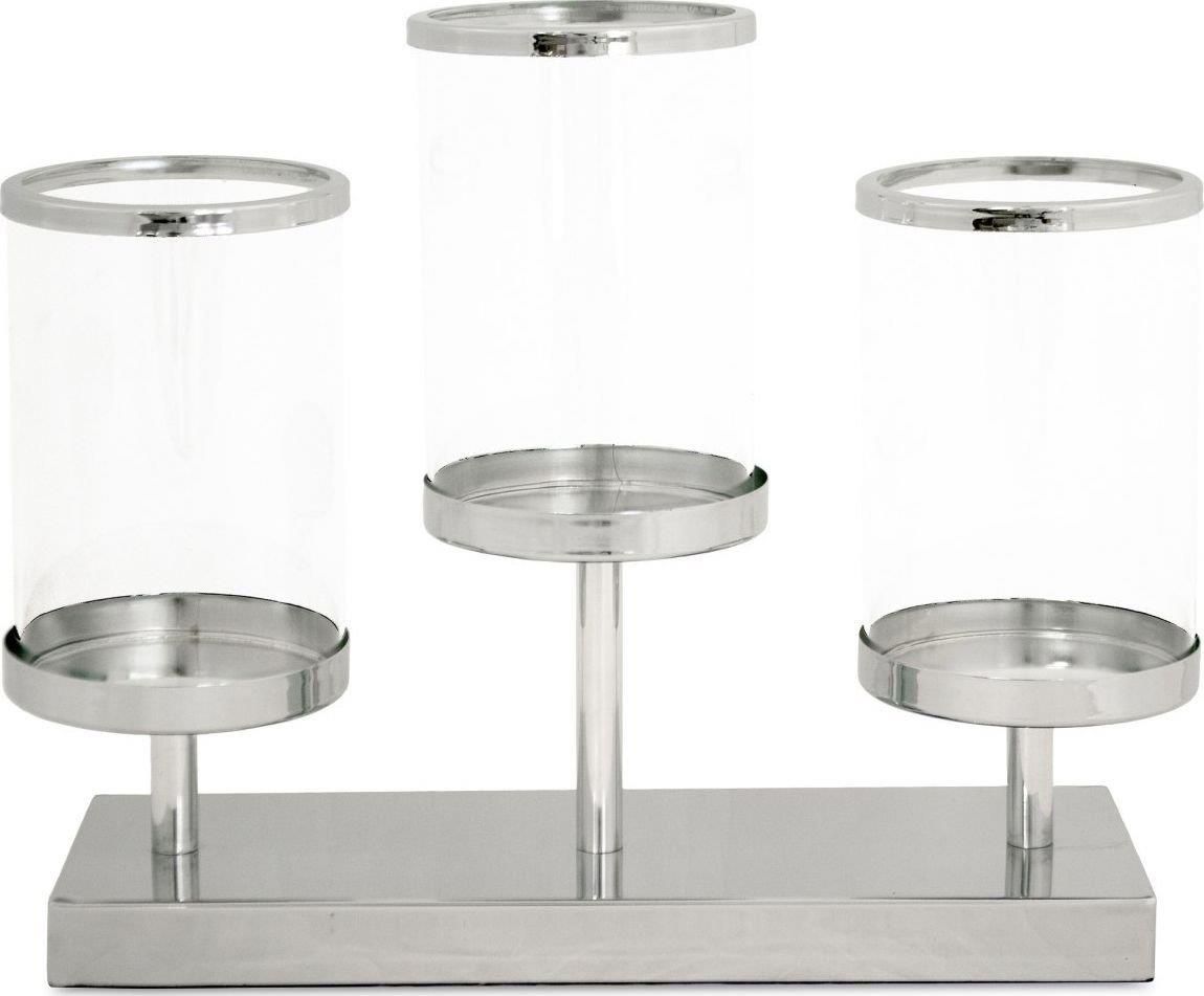 Świecznik. Rozmiar: 27,5x36x11 swiecznik10x10. Kolor: srebrny. Materiał: metal szkło. Waga: 1.25kg. Świecznik cechuje elegancja oraz unikatowy wygląd.Dekoracja dla miłośników oryginalnych ozdób.Postawiona na tle ściany, stoliku kawowym czy półeczce zrobi
