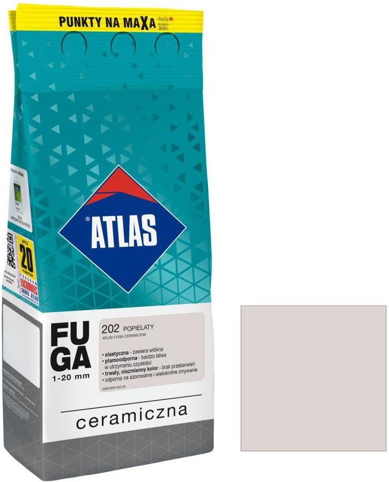 Fuga ceramiczna Atlas 2 kg popielaty Popielata fuga ceramiczna Atlas 2 kg to drobnokruszywowa cementowa zaprawa przeznaczona do spoinowania w zakresie 1-20 milimetrów. To rozwiązanie, które zapewnia nie tylko komfort pracy, ale także estetykę wykonania, funkcjonalność oraz trwałość. Zastosowanie Fuga ceramiczna Atlas może być stosowana zarówno wewnątrz, jak i na zewnątrz na dowolnym podłożu. Nadaje się do wszelkich okładzin do pomieszczeń suchych i wilgotnych, dlatego świetnie sprawdzi się między innymi jako fuga do łazienki i kuchni. Dzięki swoim właściwościom może być także stosowana na podłoża odkształcalne czy elewacje budynków, dlatego sprawdzi się na przykład jako fuga na balkon czy taras. Co więcej, zastosujesz tę fugę ceramiczną na ogrzewanie podłogowe. Główne właściwości bardzo niskie wchłanianie wody od samego początku – już w trakcie wiązania fuga jest odporna na zmywanie, podczas aplikacji fugi i jej pierwszego mycia spoina nie jest wypłukiwana plamoodporność– zastosowane przy jej tworzeniu środki hydrofobowe i oleofobowe skutecznie zabezpieczają przed przebarwieniami i brudem, uniemożliwiając wnikanie w strukturę spoiny zanieczyszczeń, dzięki czemu utrzymanie fugi ceramicznej Atlas w czystości jest bardzo proste i z powodzeniem może być stosowana jako fuga do kuchni czy łazienki odporność wielokrotne zmywanie i szorowanie – intensywne sprzątanie nie wpływa na właściwości hydrofobowe i oleofobowe trwały kolor– dzięki specjalnie dobranym pigmentom nie występuje efekt przebarwień i marmurkowania odporność mechaniczna– wykazuje bardzo wysoką odporność na intensywne użytkowanie, jest elastyczna i odporna na spękania bardzo dobra przyczepność do brzegów płytek– nawet duże obciążenia eksploatacyjne lub odkształcenia termiczne okładziny nie powodują uszkodzeń odporność na działanie temperatur od -30°C do +80°C. Główne parametry szerokość spoiny: 1-20 mm temperatura przygotowania zaprawy oraz podłoża i otoczenia w trakcie prac: od +5 °C do +35 °C mycie wstępne: po 10-30 minutach mycie końcowe: po 4-8 godzinach lekki ruch pieszy: po 6-8 godzinach pełne obciążenie mechaniczne: po 24 godzinach pełna odporność na szorowanie: po 21 dniach wiązania pełna odporność na zabrudzenie: po 21 dniach wiązania.
