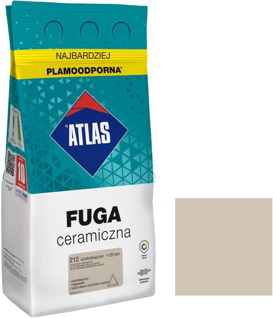 ATLAS FUGA CERAMICZNA 212 SZAROBRĄZOWY 5KG Drobnokruszywowa cementowa zaprawa do spoinowania (1-20 mm) Najważniejsze cechy plamoodporna - łatwa w utrzymaniu czystości elastyczna – zawiera włókna trwały, niezmienny kolor - brak przebarwień odporna na szorowanie i wielokrotne zmywanie doskonała do …