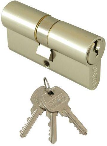 Wkładka bębenkowa GERDA WKE1 30/40 nikiel satyna trwałość i bezpieczeństwo Rozmiar: 30/40 Wkładka drzwiowa WKE1 to wkładka bębenkowa do zastosowania w niemal każdym rodzaju zamka wpuszczanego. Szeroka gama rozmiarów pozwoli dobrać odpowiedni rozmiar wkładki do posiadanych drzwi. Dane techniczne wkładki WKE1 GERDA najwyższa trwałość mechanizmu– ponad 100 000 cykli zabezpieczenie kodu 2 klasa w komplecie 3 klucze i śruba mocująca Jak zmierzyć i wymienić wkładkę do drzwi GERDA Wystarczą dwa pomiary, aby prawidłowo zmierzyć wkładkę drzwiową. Mierząc tą metodą dowiesz się, czy potrzebujesz wkładki profilowej z zabierakiem czy z zębatką. Pamiętaj - zwykła wkładka profilowa nie powinna wystawać więcej niż 2-3 mm za szyld ochronny. Krok 1. Odkręć śrubę mocującą wkładkę kręcąc odwrotnie do wskazówek zegara. Krok 2. Przekręć delikatnie kluczem, aby zabierak wkładki schował się w obrysie wkładki i wyjmij wkładkę. Krok 3. Zmierz stronę wewnętrzną wkładki - od osi śruby mocującej do końca wkładki i zanotuj wynik w milimetrach np. 35mm. Krok 4. Zmierz stronę zewnętrzną wkładki - od osi śruby mocującej do końca wkładki i zanotuj wynik w milimetrach np. 40mm. Krok 5. Zapisany wynik w milimetrach to rozmiar wkładki – np. 35mm wewnętrzna /40mm zewnętrzna, czyli 35/40. Krok 6. Pamiętaj by do wyniku dodać rozmiar szyldu. Wkładka profilowa nie powinna wystawać więcej niż 2-3 mm za szyld ochronny. A: 30mm B: 30mm C:60mm Wejście na klucz/30/zbierak/30/wejście na klucz