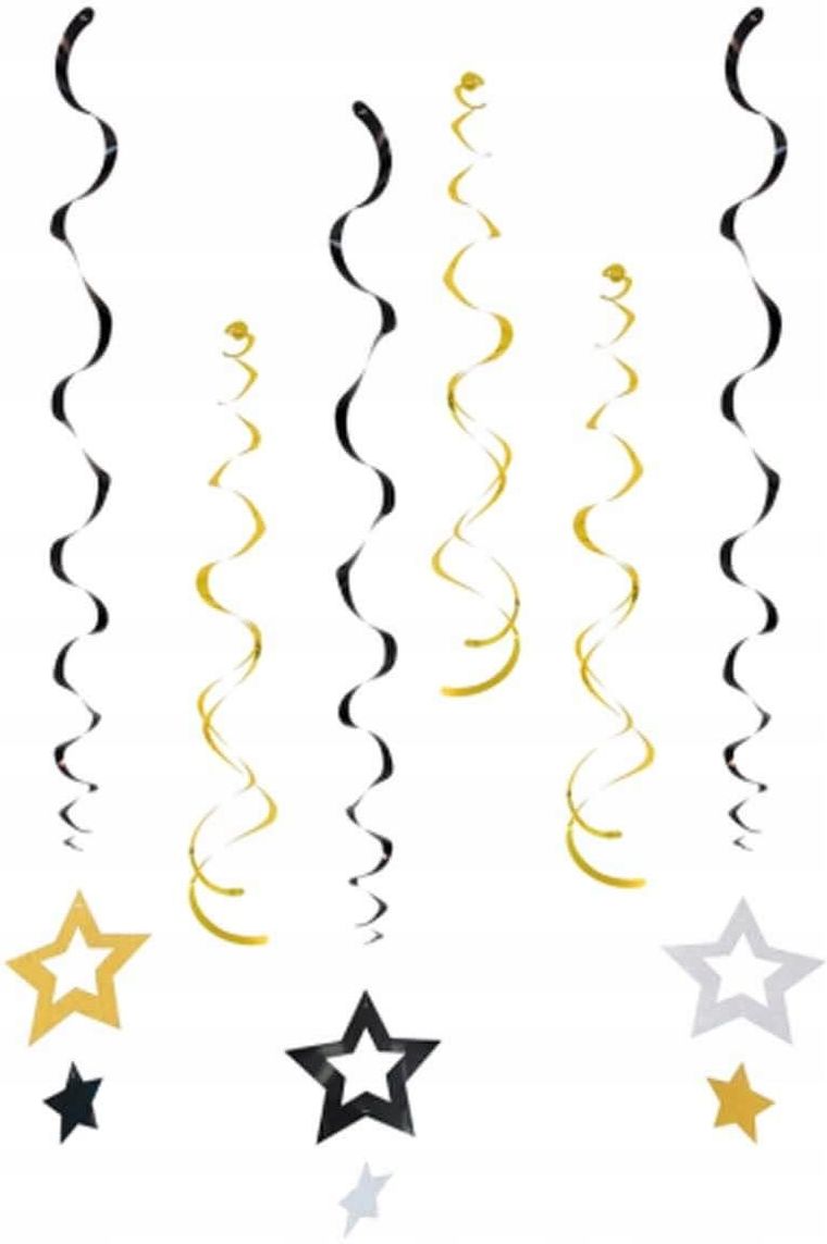 Organizujesz przyjęcie urodzinowe bądź inną imprezę, na której nie może zabraknąć pięknych i eleganckich dekoracji? Jednym z niezwykle atrakcyjnych elementów dekoracyjnych z całą pewnością są wiszące świderki! W skład zestawu wchodzi aż 6 świderków: 3 w kolorze złotym oraz 3 o barwie czarnej. Na końcu czarnych świderków widnieją też złote, srebrne i czarne gwiazdki. Całość została utrzymana w niezwykle eleganckim stylu glamour.✅ Świderki to bardzo uniwersalna dekoracja, która sprawdzi się podczas urodzin, sylwestra, studniówki i wielu innych uroczystości.✅ Świderki prezentują się doskonale, gdy zwisają spod sufitu na lampie, żyłce lub haczyku.✅ Papierowy produkt jest przyjazny dla środowiska.Jeśli przygotowujesz imprezę i poszukujesz stylowych ozdób, zakup wiszących świderków w czarno-złotym kolorze na pewno będzie strzałem w dziesiątkę! czarny,GoDan,papier,złoty