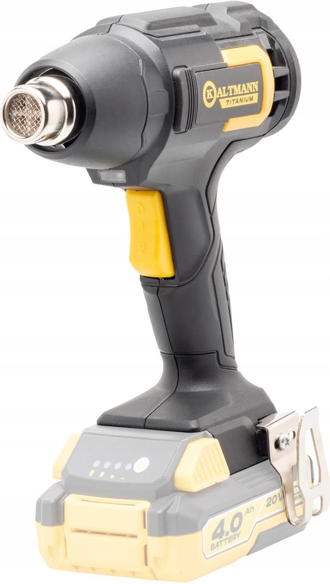 Opalarka akumulatorowa Kaltmann TITANIUM, 250 W, 20 V, 100 l/min Opalarka akumulatorowa Kaltmann TITANIUM jest urządzeniem, które oferuje wysoką maksymalną temperaturę, sprawdzającą się w szeregu domowych i warsztatowych prac. Możesz z jej pomocą komfortowo pracować na rozmaitych materiałach. Wygodę zapewnia bezprzewodowe użytkowanie sprzętu i brak kabli wokół Ciebie. Maksymalna temperatura: 550°C. Napięcie: 20 V. Moc znamionowa: 250 W. Maks. przepływ powietrza: 100 l / min.
