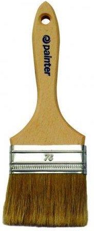 PAINTER Pędzel malarski ANGIELSKI 76mm Pędzel angielski płaski z wąskim włosiem służy do precyzyjnego nakładania farb i lakierów. Szczecina pędzla wykonana z wysokiej jakości. Posiada drewnianą wygodną rękojeść, która ułatwia pracę. Produkt jest przystosowany do aplikacji wszystkich rodzajów farb, dzięki czemu posiada uniwersalne zastosowanie. Szerokość: 76 mm Długość włosia: 51 mm Materiał uchwytu: Drewno
