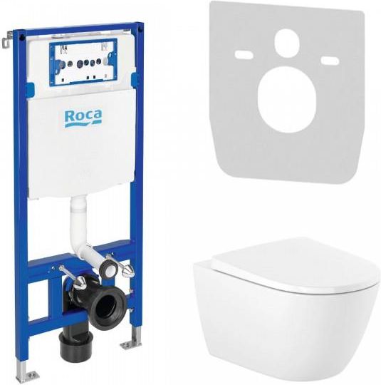 Stelaż podtynkowy do zabudowy lekkiej (do płyt karton-gips), z 3 zakresami spłukiwania: 2/4 l, 3/4,5 l, 3/6 l wydajny i cichy zawór napełniający wysokość 112 cm głębokość zabudowy 8-12,5 cm minimalna głębokość zabudowy 8 cm może być osiągnięty przy częściowym wpuszczeniu rury odpływowej w ścianę rozstaw śrub montażowych 180 lub 230 mm w zestawie z wspornikami mocującymi, rurą przyłączeniową DN90 + przejściówka DN90/DN100 do kompletowania z przyciskiem spłukującym DUPLO ONE Miska WC wisząca: kształt: zaokrąglona z ukrytym systemem montażu rodzaj kołnierza: Rimless Vortex z wirowym systemem spłukiwania rodzaj odpływu: poziomy materiał: ceramika sanitarna sposób montażu: do ściany / do stelażu system spłukiwania: przystosowana do spłukiwania 3/4,5l oraz 3/6l kolor: biały Deska WC: wolnoopadająca z zawiasami ze stali nierdzewnej z systemem łatwego demontażu materiał deski: duroplast kolo: biały Zestaw do izolacji akustycznej: do izolacji hałasu materiałowego WC i bidetów do WC i bidetów z odstępem między mocowaniami 18 lub 23 cm materiał PE-E kolor biały