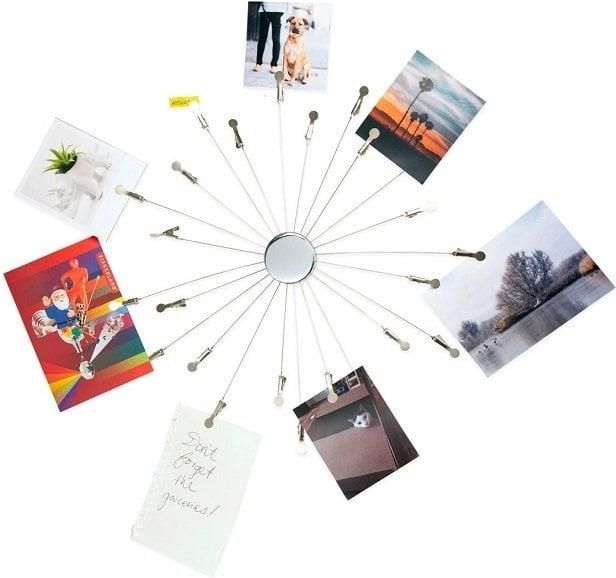 Uchwyt na Zdjęcia – Promienie Wspomnień W czasach, gdy zdjęcia w serwisach społecznościowych zalewają nasze profile, prawdziwe chwile warte zapamiętania najlepiej zachować tylko dla najbliższych. Nasz Uchwyt na Zdjęcia to idealny sposób, aby najcenniejsze wspomnienia zawsze były w zasięgu wzroku. �️💛 ▶️ Dlaczego warto? Stylowy design: Uchwyt w kształcie słoneczka z promieniami zakończonymi klipsami doda uroku każdemu wnętrzu. Praktyczne zastosowanie: Możesz przechowywać zdjęcia, notatki, pocztówki czy listy zakupów – wszystko w jednym miejscu. Uniwersalny montaż: Wbudowany magnes umożliwia łatwe przyczepienie uchwytu np. do lodówki, a opcja mocowania do ściany daje większą elastyczność. Szybki dostęp do wspomnień: Dzięki 24 klipsom możesz zorganizować swoje zdjęcia lub ważne notatki w efektowny i uporządkowany sposób. Świetny prezent: Idealny dla osób, które kochają otaczać się zdjęciami i wspomnieniami. ▶️ Dla kogo? Dla miłośników wspomnień: Idealny sposób na wyeksponowanie najważniejszych chwil. Dla artystycznych dusz: Stylowy dodatek do wnętrza, który pomaga w organizacji przestrzeni. Dla zapominalskich: Świetny jako przypominajka na notatki i listy. ▶️ Specyfikacja: Nazwa: Uchwyt na Zdjęcia (Photo Memo Holder). Kształt: Słoneczko z promieniami. Materiał: Metal. Średnica: 36 cm (z ramionami). Funkcje: 24 ramiona zakończone klipsami do mocowania zdjęć, notatek, itp. Opcje montażu: Mocowanie na ścianie lub przyczepienie na magnes (np. do lodówki). Opakowanie: Estetyczne, idealne na prezent.