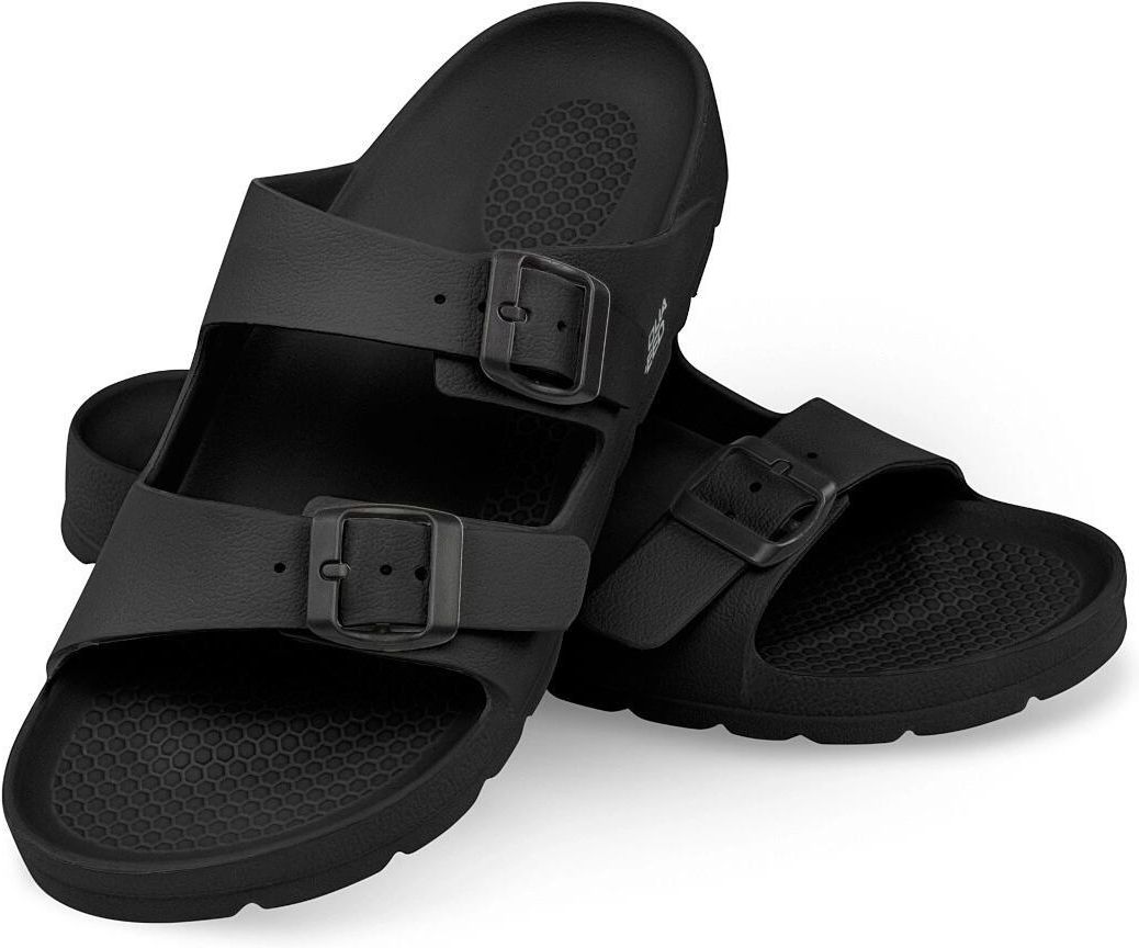 Piankowe wygodne klapki z paskami i klamrami na basen AQUA SPEED Laredo 05 Producent: AQUA SPEED Model: Laredo Rozmiar: 40 (długość wkładki 25,5 cm) Kolor: 07 - czarny Materiał: EVA Injection Przeznaczenie: głównie na basen Lekkie i wygodne klapki z elastycznego tworzywa EVA. Sprawdzą się na basenie, plaży i w codziennym użytkowaniu. Dwa regulowane paski z klamrami zapewniają dopasowanie, a anatomiczna wkładka z masującą strukturą dba o komfort stóp. Podeszwa o dobrej przyczepności gwarantuje stabilność, nawet na mokrej nawierzchni. Lekkie i wygodne klapki z elastycznego tworzywa EVA. Sprawdzą się na basenie, plaży i w codziennym użytkowaniu. Solidne klamry umożliwiają łatwą regulację pasków, dzięki czemu klapki idealnie dopasowują się do stopy i zapewniają stabilność podczas chodzenia. Anatomiczna, teksturowana wkładka dopasowuje się do kształtu stopy i zapewnia lepszy komfort oraz lekki efekt masażu podczas chodzenia. Dobrze trzymają się podłoża dzięki odpowiednio wyprofilowanej podeszwie, która zwiększa przyczepność, nawet na mokrych nawierzchniach. A - Rozmiar B - Długość wkładki wew. C - Szacowana długość stopy Zdjęcia produktu