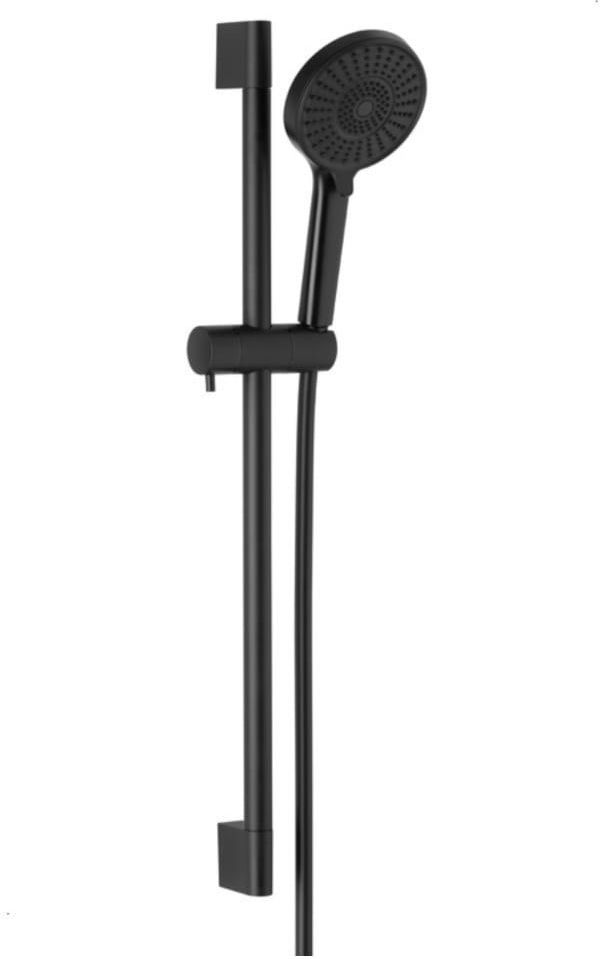 KFA Armatura Malaga zestaw prysznicowy ścienny czarny 841-352-81 KFA Armatura Malaga to połączenie elegancji, funkcjonalności i troski o środowisko. Zestaw prysznicowy ścienny w matowym, czarnym wykończeniu stanowi stylowy akcent w nowoczesnej łazience. Proste linie i subtelne załamania kształtów nadają mu minimalistyczny charakter, który doskonale komponuje się z nowoczesnymi trendami wnętrzarskimi. Kolekcja Malaga to harmonia formy i technologii – oszczędnościowy napowietrzacz ogranicza zużycie wody nawet o 50%, bez utraty komfortu kąpieli. Wysoka jakość wykonania to zasługa połączenia mosiądzu i tworzywa ABS, które gwarantują trwałość i odporność na korozję. Powłoka w kolorze czarnego matu została wykonana w technologii PVD, zapewniającej zwiększoną odporność na ścieranie i zarysowania. Rączka natrysku oferuje trzy tryby strumienia, umożliwiając dopasowanie intensywności kąpieli do indywidualnych preferencji użytkownika. Najważniejsze cechy Nowoczesny design w matowym, czarnym wykończeniu. Trwała powłoka wykonana w technologii PVD. Trzy tryby strumienia – komfortowa kąpiel dopasowana do potrzeb. Oszczędnościowy napowietrzacz – redukcja zużycia wody nawet o 50%. Wysoka jakość wykonania z mosiądzu i tworzywa ABS. Łatwy montaż ścienny z możliwością dostosowania uchwytów. Elastyczny wąż PVC o długości 1500 mm – wygoda użytkowania. Dane techniczne Indeks: 841-352-81 Kolor: czarny EAN: 5907571844789 PKWiU: 28.14.20.0 Montaż: ścienny Materiał: mosiądz + tworzywo ABS Przepływ wody: 11 l/min Ilość strumieni rączki natrysku: 3 Długość węża: 1500 mm Materiał węża: PVC Opakowanie zawiera: drążek natrysku, uchwyty ścienne (2 szt. w tym 1 regulowany), zestaw montażowy (2 wkręty z kołkami ściennymi), rączkę natrysku z uchwytem, wąż PVC (L=1500 mm) Zastosowanie Nowoczesne łazienki utrzymane w stylistyce minimalistycznej. Idealny wybór dla osób ceniących elegancję i funkcjonalność. Kompatybilny z większością baterii prysznicowych ściennych.