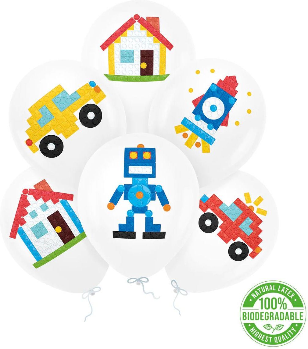 Gotowy zestaw balonów na wykonanie kompozycji na urodziny z motywem Klocków - Block party. Idealne na dodatkową dekoracje po skompletowaniu innych akcesoriów z jednym motywem. W zestawie znajdziemy 6 szt. - balon lateksowe 12 cali Balony są przeznaczone do napełniania helem jak i powietrzem. …