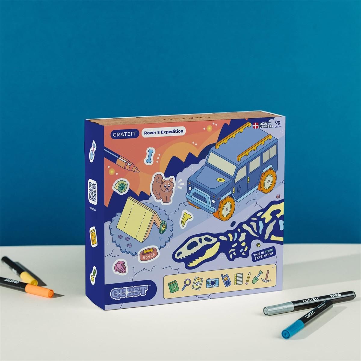 Embark on a thrilling adventure with Rover the dog and the Dinosaur Rover's Expedition play set by CrateIT! This delightful outdoor play tent set invites young explorers to dive into the wonders of nature, where they can set up camp and uncover hidden treasures. Perfect for sparking creativity and encouraging imaginative play, this set is sure to become a favorite for any little adventurer. What's Included? A charming play tent that serves as your base camp in the great outdoors. A stylish SUV toy vehicle, perfect for navigating through rugged terrains and making your expedition even more comfortable. Rover the dog, your trusty companion, ready to lead the way on your journey. Unleash Your Creativity One of the standout features of this play set is its customizable nature. All components are crafted from natural wood, providing a blank canvas for your child's artistic expression. Whether using markers, paints, or colored pencils, kids can personalize their play set to reflect their unique style and imagination. Please note that markers are not included, but they can be easily purchased separately to complete your artistic toolkit. Specifications Item Number: C1126 Number of Figures/Parts: Includes multiple pieces for endless play possibilities. Package Size: Compact and easy to store, perfect for taking on the go. Weight: Lightweight design makes it easy for kids to carry and set up their camp anywhere. Why Choose Dinosaur Rover's Expedition? This play set is more than just a toy; it's an invitation to explore, learn, and grow. As children engage in role-play, they develop essential skills such as problem-solving, creativity, and social interaction. The Dinosaur Rover's Expedition set is designed to inspire curiosity and a love for the natural world, making it an excellent choice for parents who value educational play. Join Rover and embark on countless adventures, creating memories that will last a lifetime. Whether camping in the backyard or exploring the living room, this play set promises endless fun and discovery. Get ready to unleash your child's imagination and watch as they transform into intrepid explorers with the Dinosaur Rover's Expedition by CrateIT!